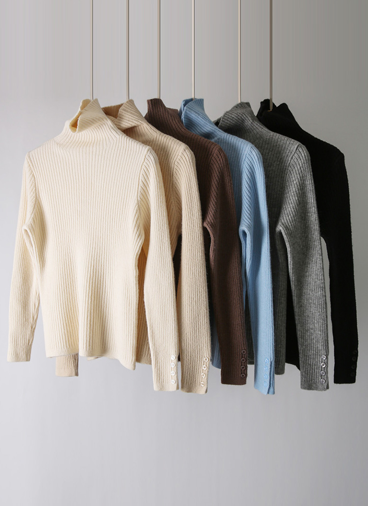[The Onme] (6 Colors) Slim Ribbed Turtleneck Button Knit Top
