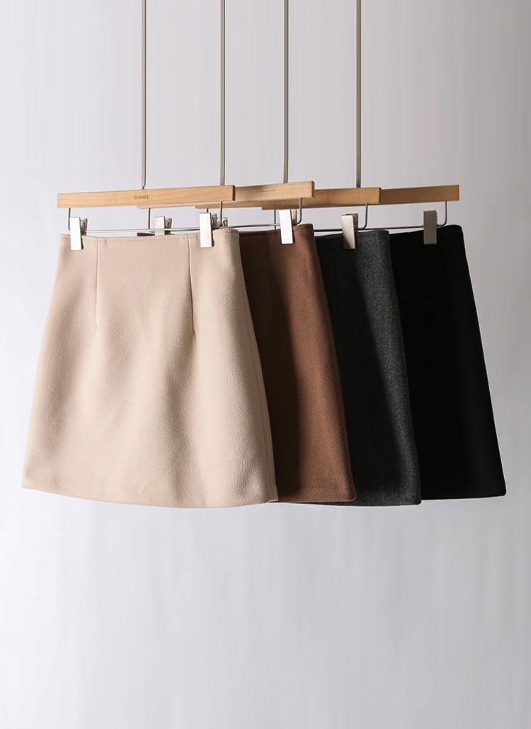 [Crafted from thick winter fabric, this mini skirt offers cozy warmth with a refined A-line silhouette that elongates the legs for versatile styling.]