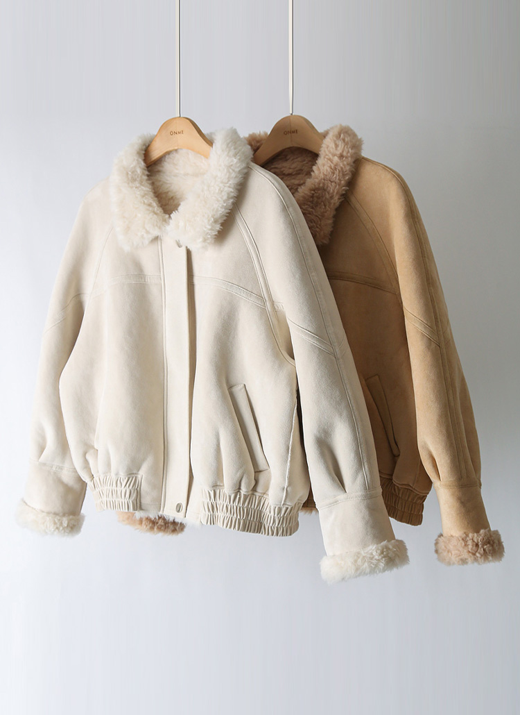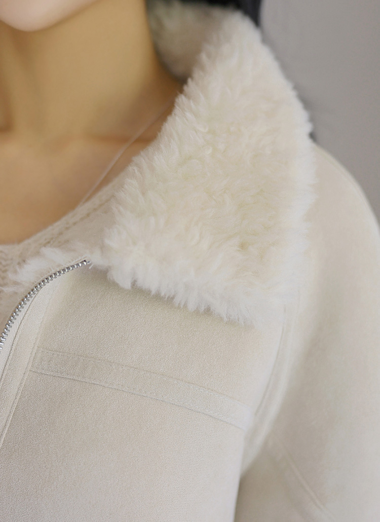 [The Onme] Faux Suede Fur Lined Zip-Up Jacket