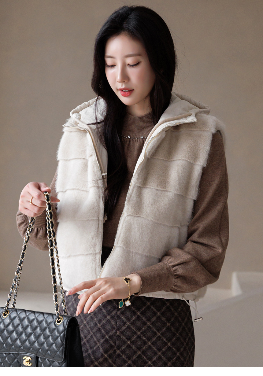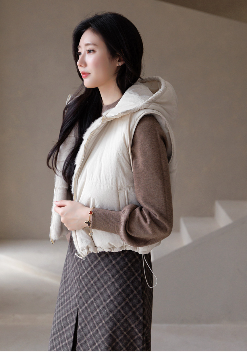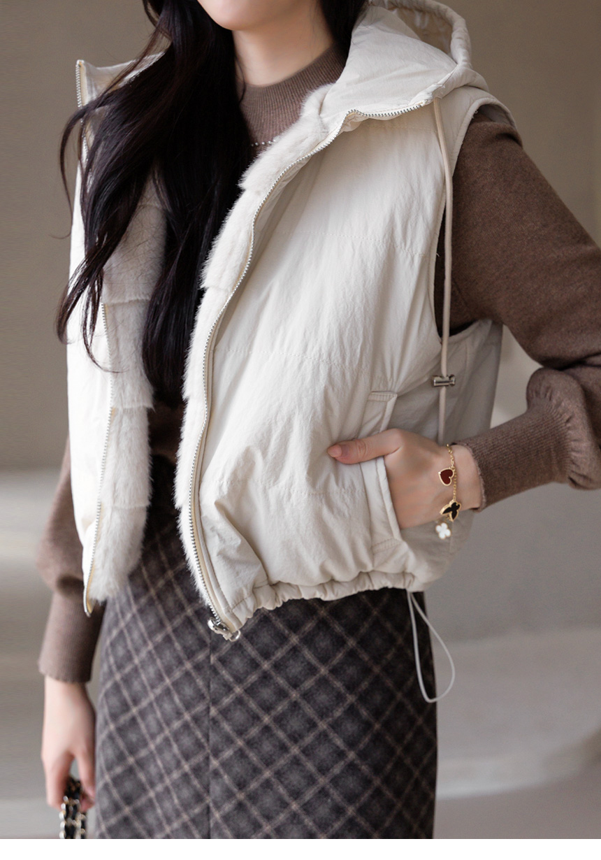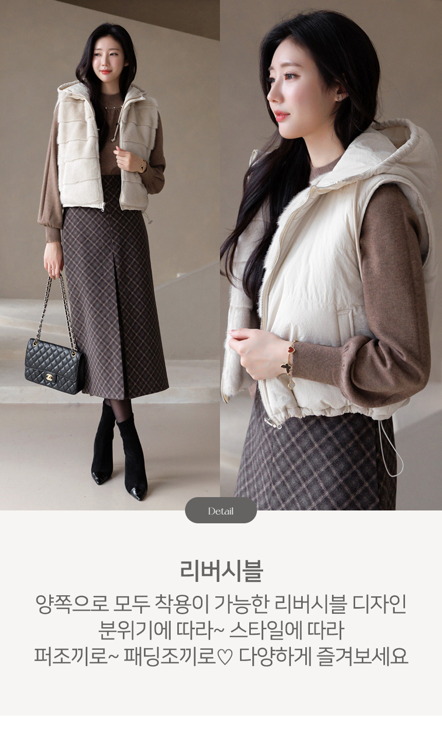 마나모 활용도높은 양면 리버시블 퍼 패딩 후드 조끼 베스트