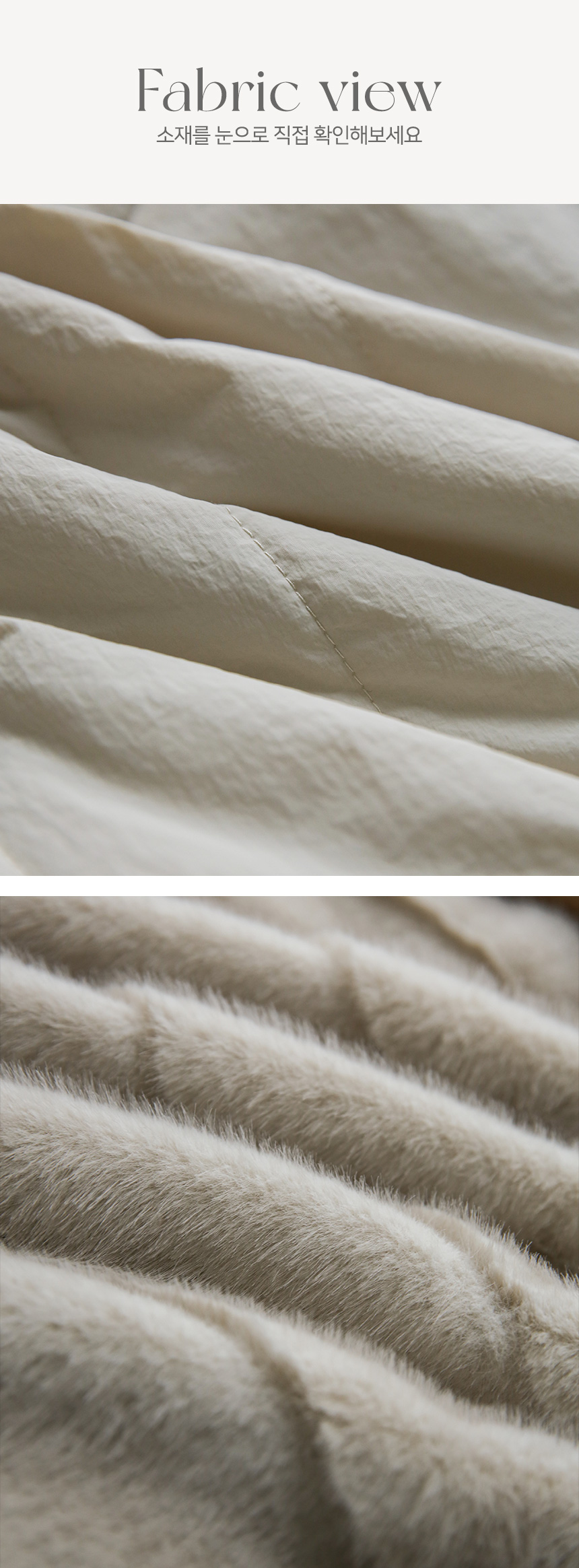 한쪽은 부드럽고 풍성한 퍼 텍스쳐로 되어 따뜻하고 우아한 무드를 선사하고