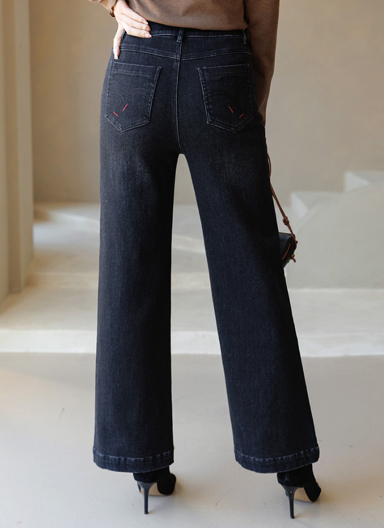 세련된 포인트를 더한 스트레이트 세미 와이드 청바지에요