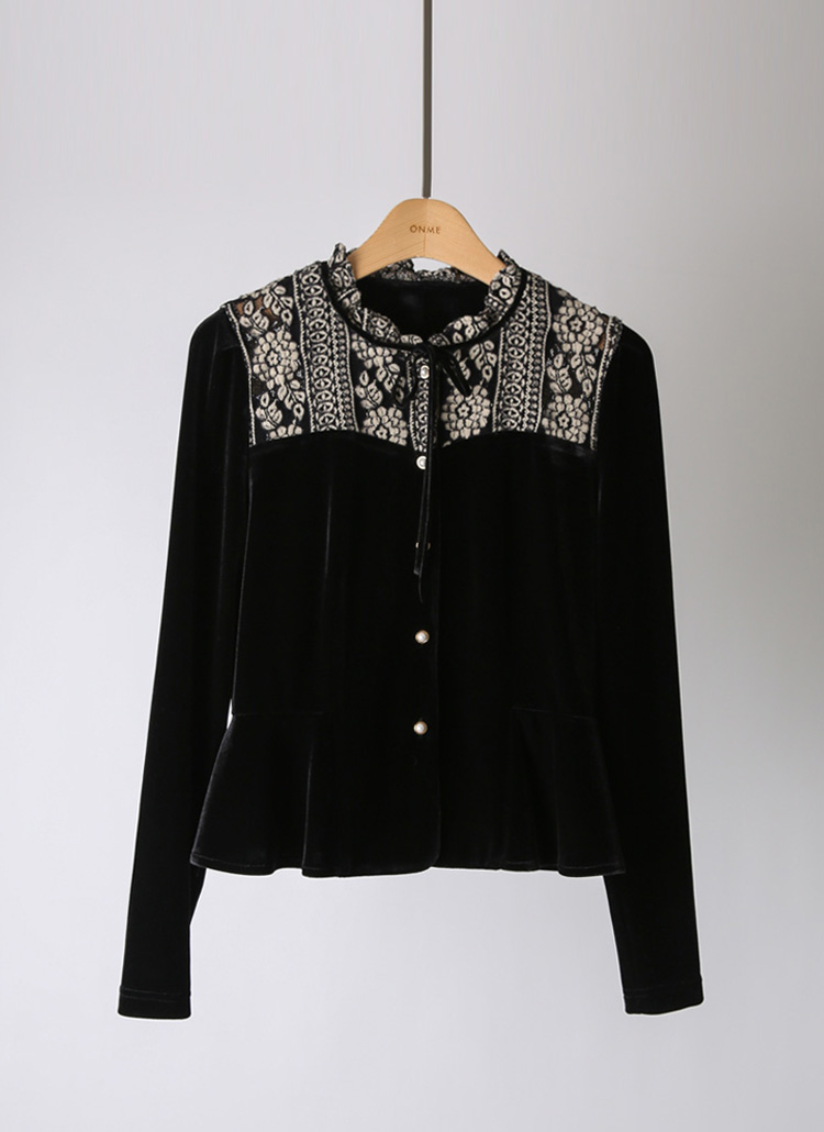 루이스엔젤 특.제 레이스 배색 벨로아 페플럼 블라우스에요