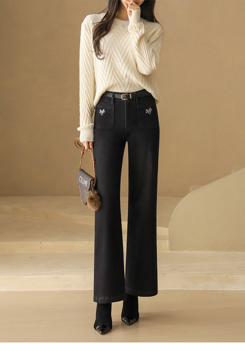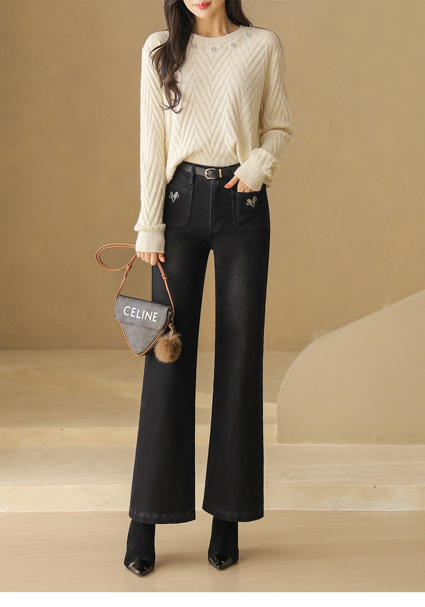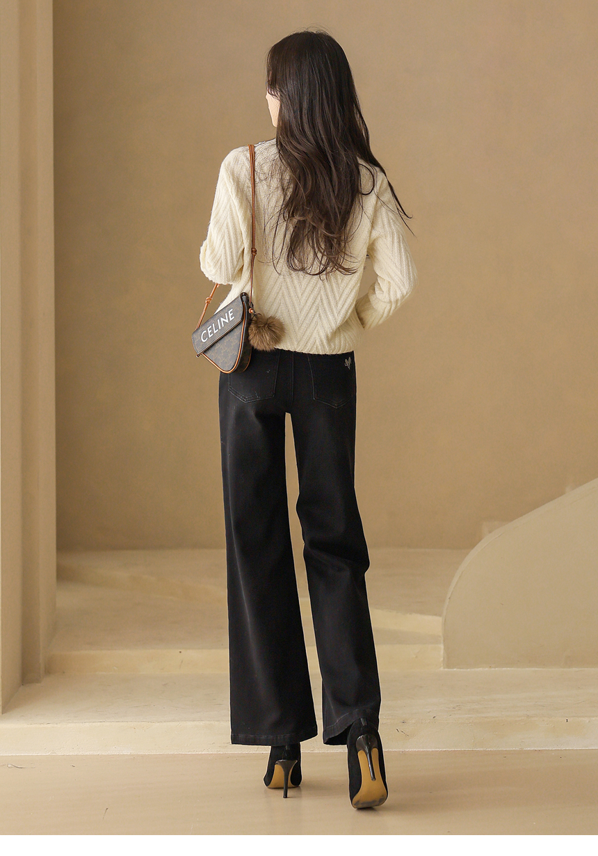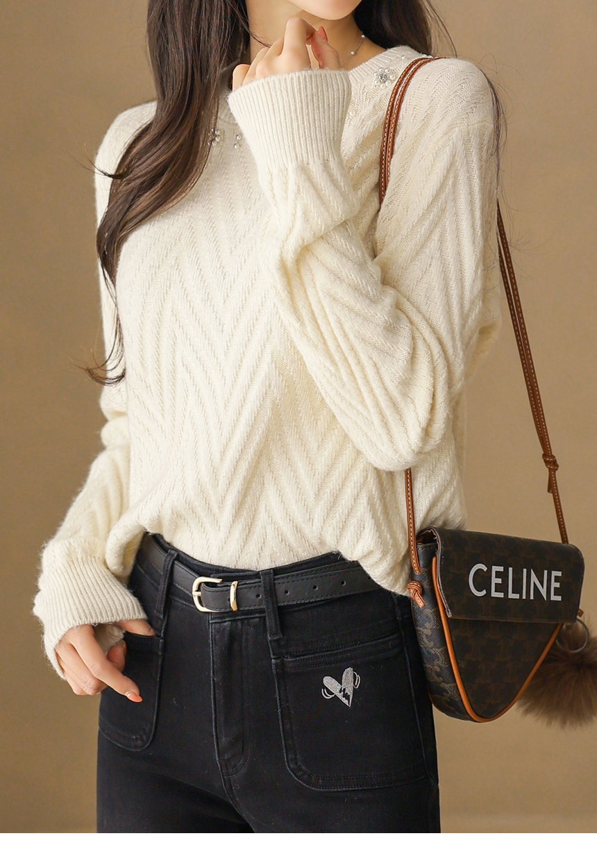 [An elegant chevron-textured knit with sparkling floral crystal accents along the neckline, offering cozy warmth, soft stretch, and a refined everyday look.]