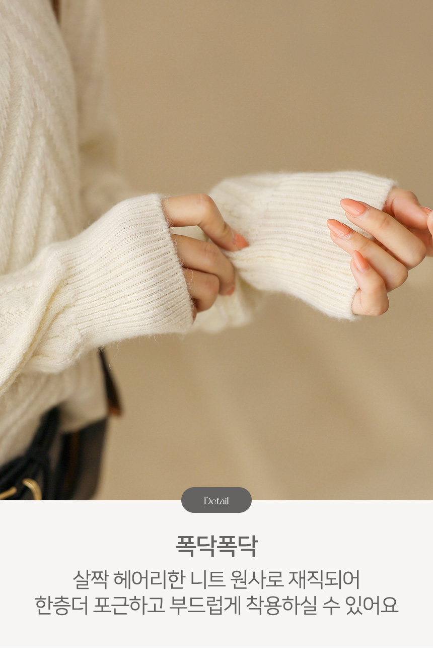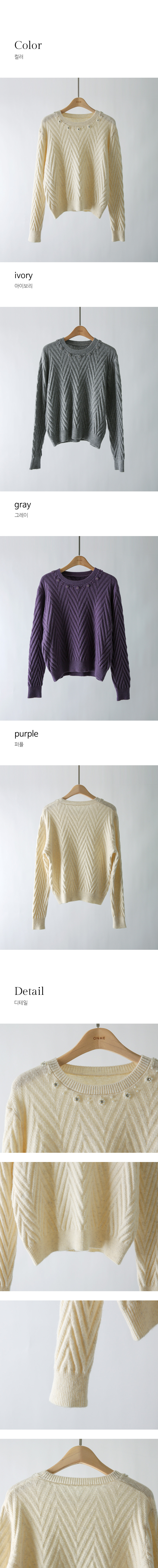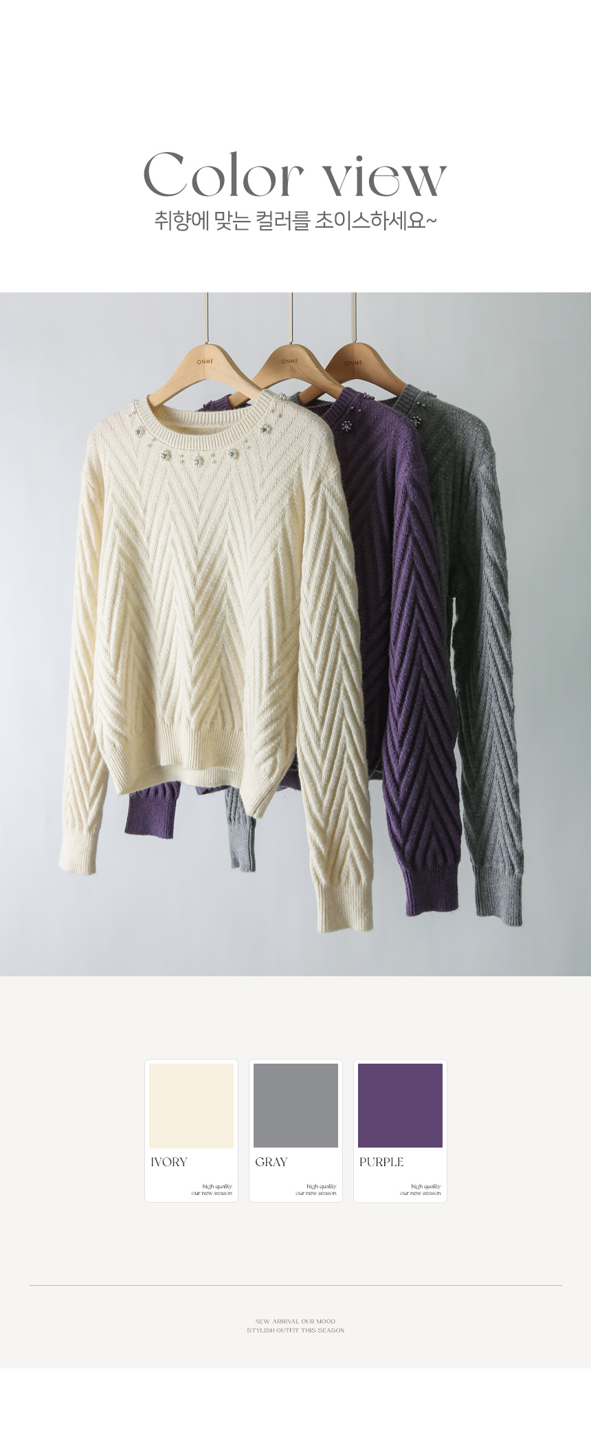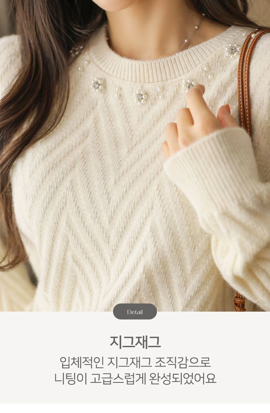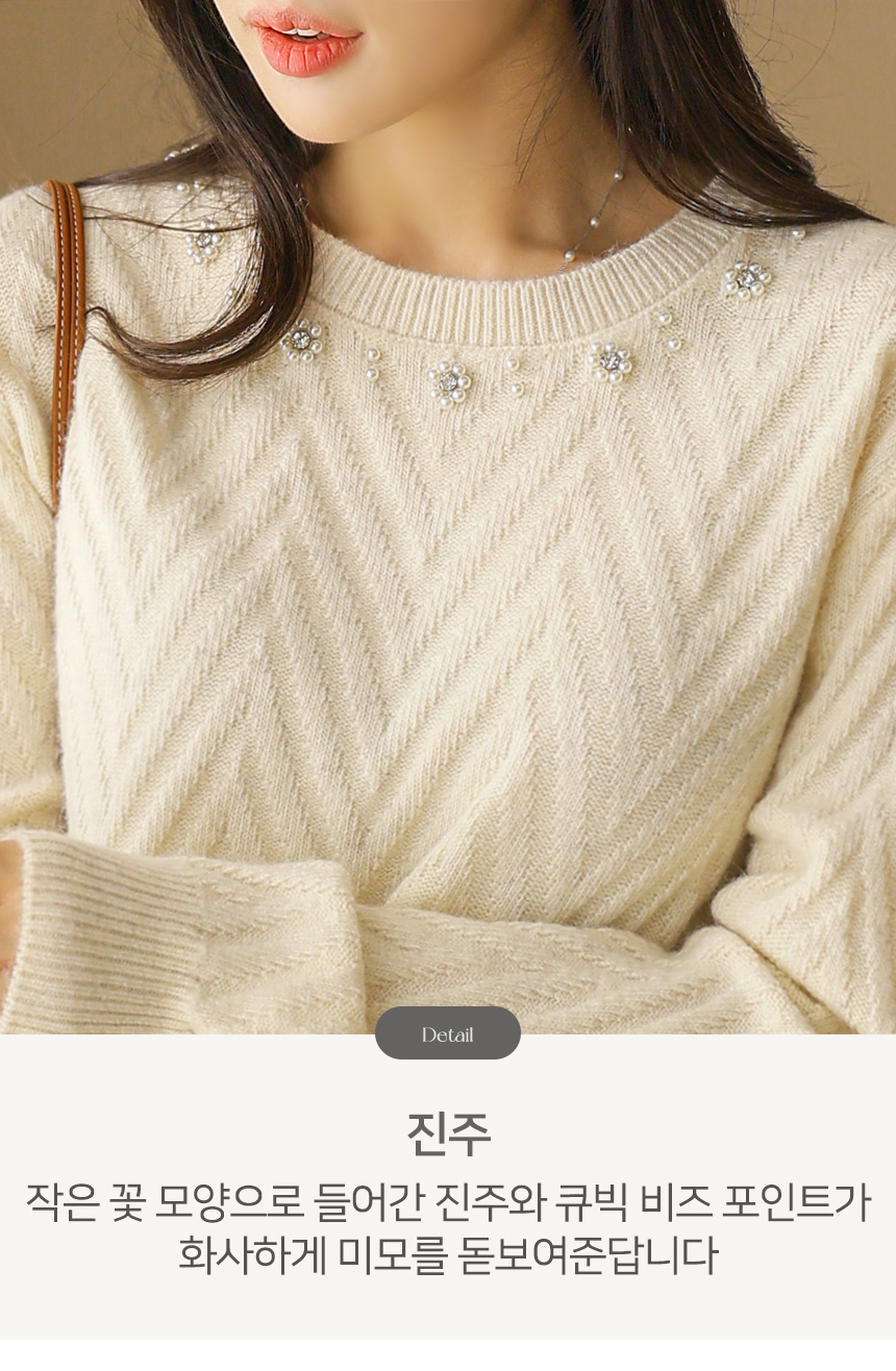 입체적인 텍스쳐와 주얼리 같은 디테일이 어우러진 매력만점 니트에요