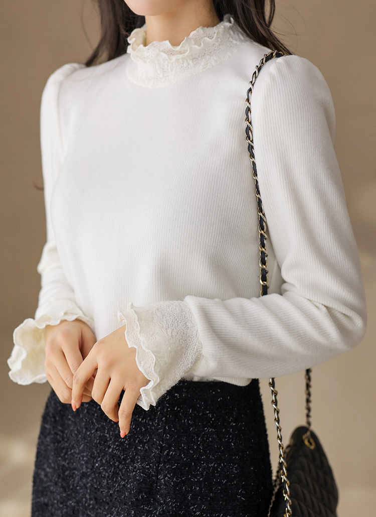 [LouisAngel] Lace Frill Ribbed Warm Blouse Tee