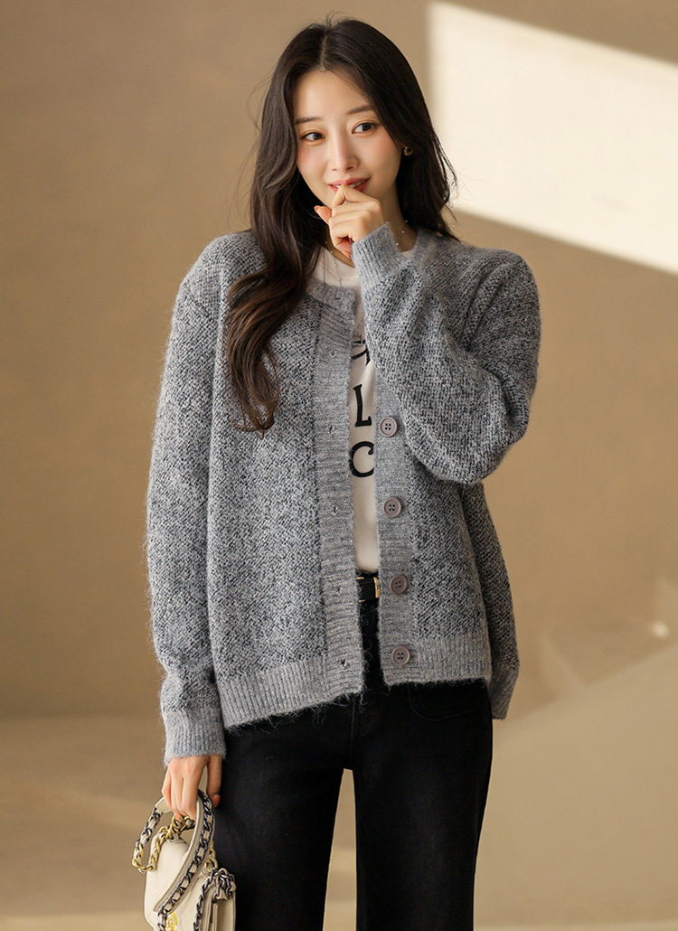 펄 스팽글 믹스 보카시 니트 가디건이에요