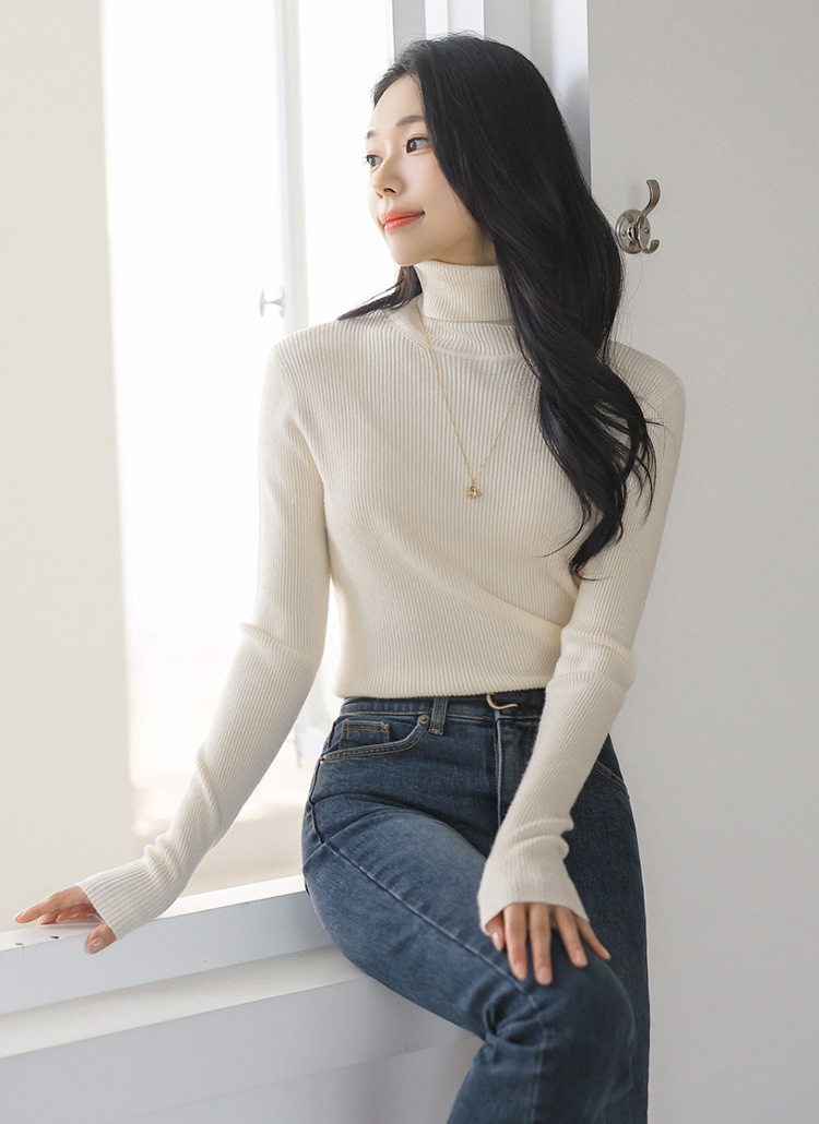 Pure Ease Slim Rib Turtleneck Knit Top