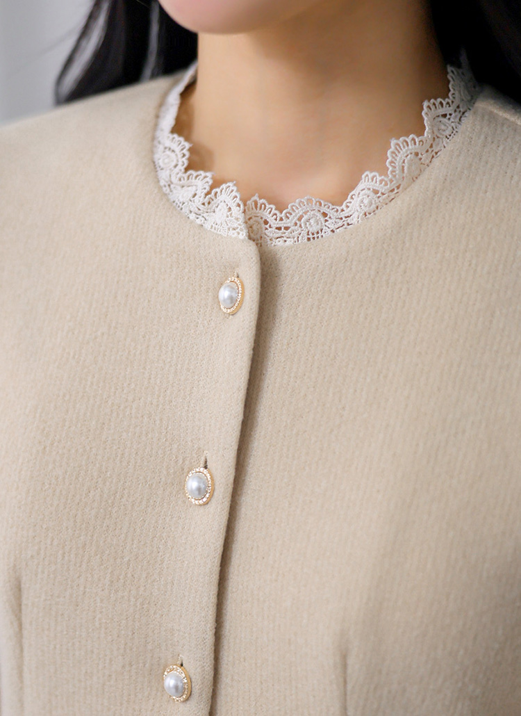 넥라인과 소매 끝에 더해진 레이스 디테일로