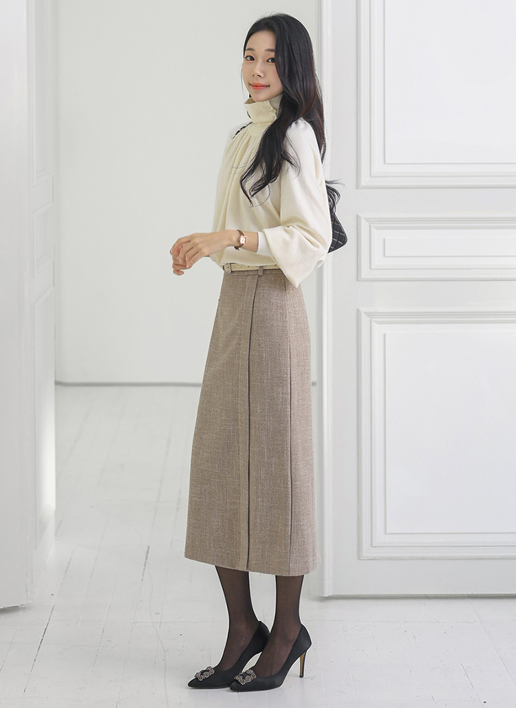 차분하면서도 고급스러운 분위기가 느껴지는 H라인 스커트예요 :)