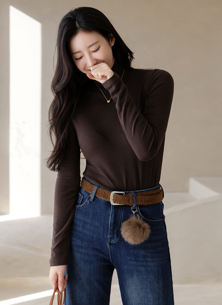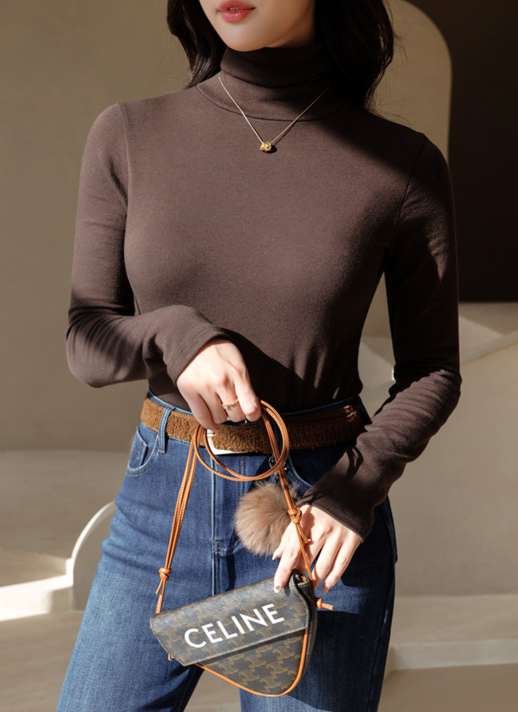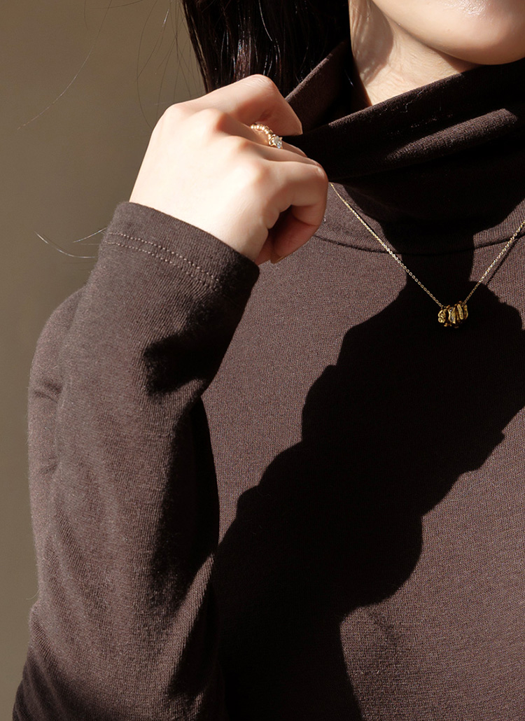 [A lightweight wool-blend turtleneck with a smooth, stretchy feel that gently hugs the body, offering breathable warmth and effortless layering for refined everyday fall and winter outfits.]