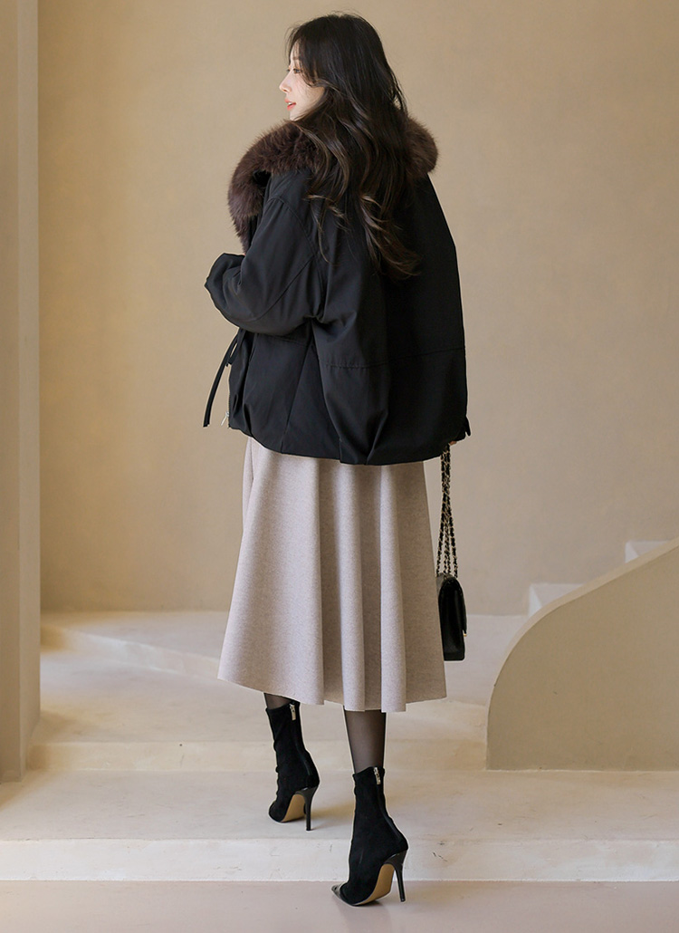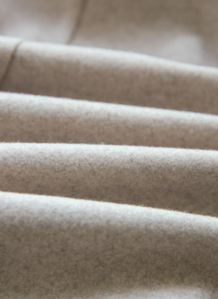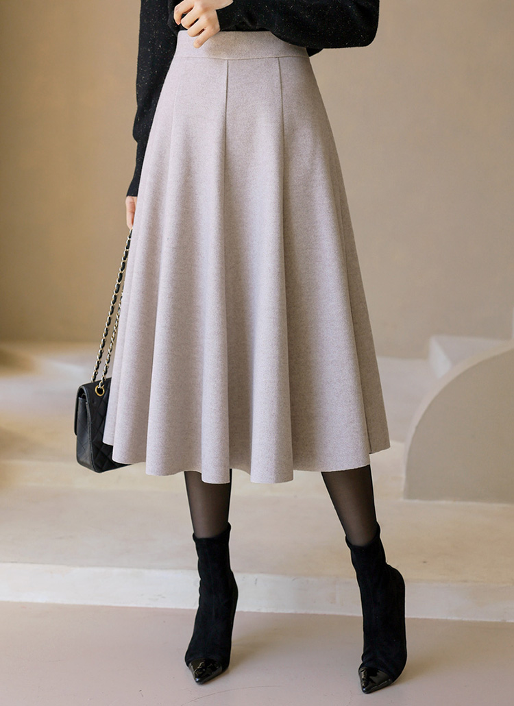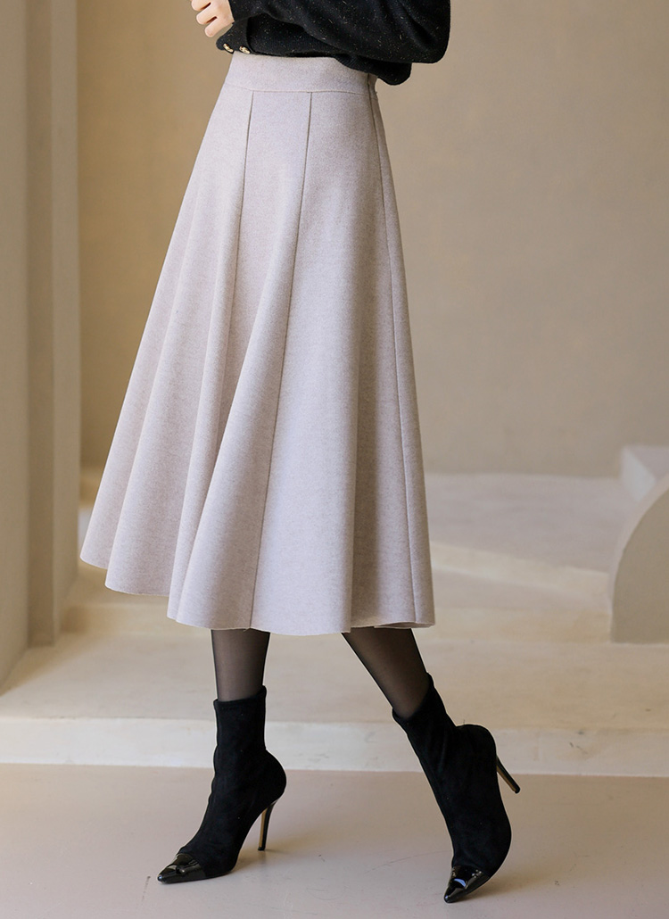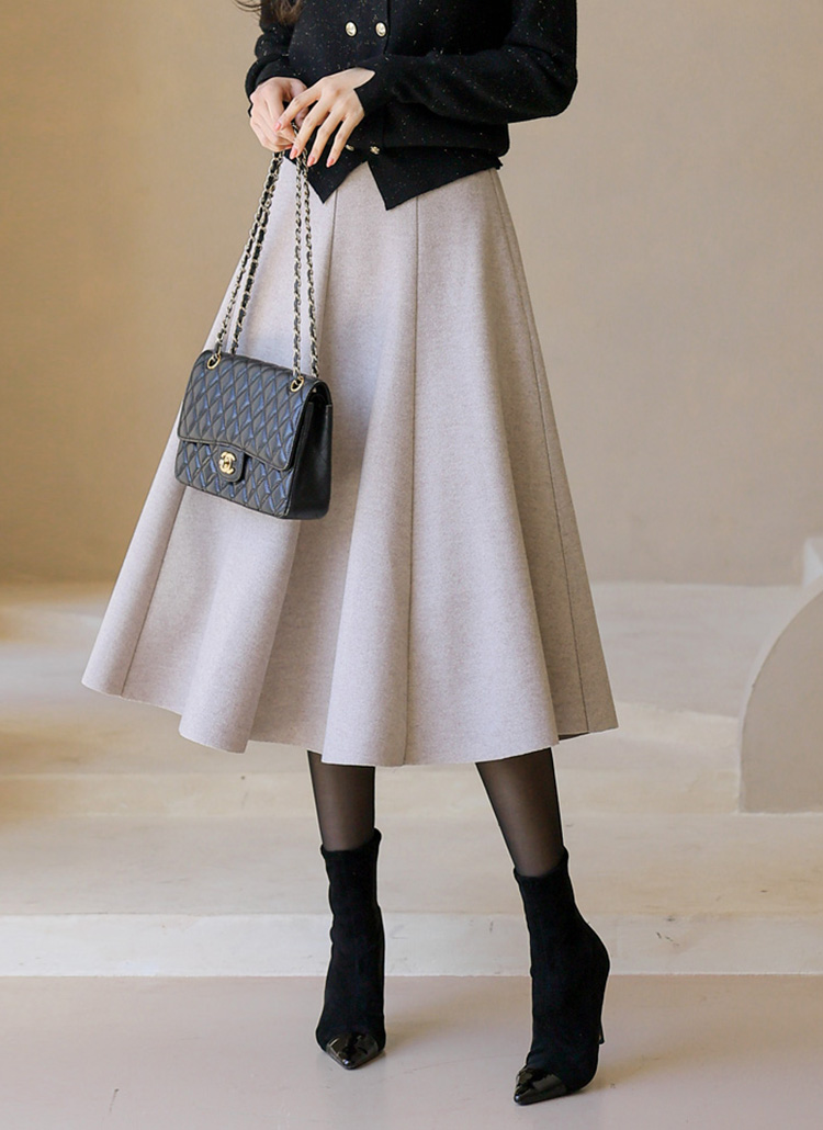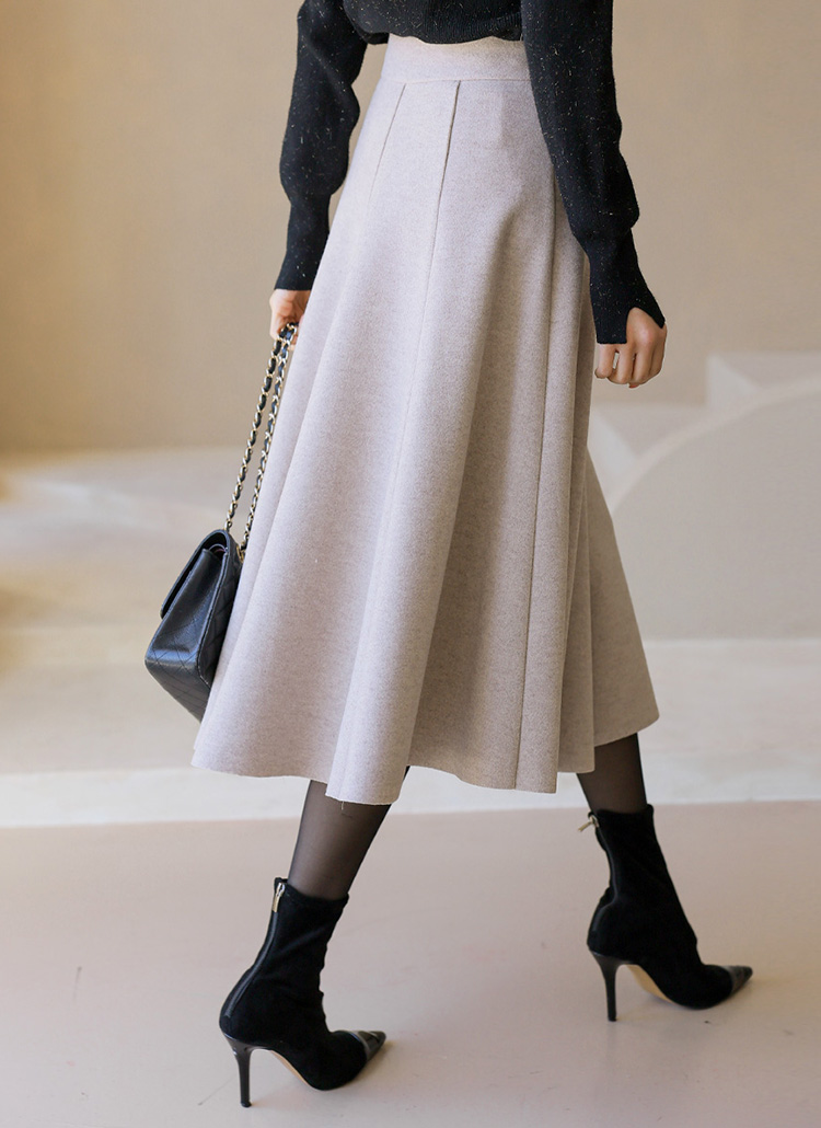 [This beautifully tailored A-line skirt uses panel detailing to add subtle volume, balancing a clean silhouette with cozy warmth for polished everyday looks throughout the winter season.]