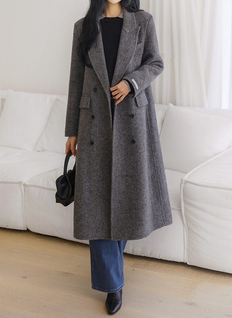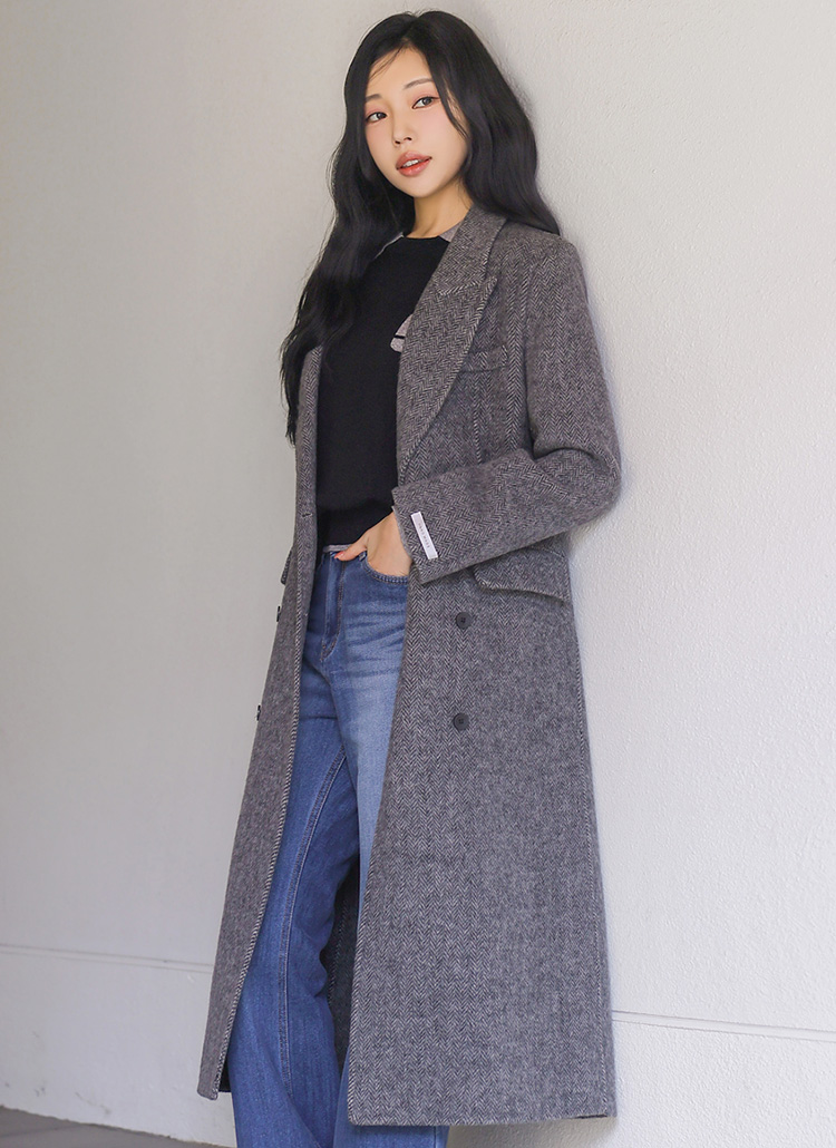 [The Onme] Timeless Double-Breasted Herringbone Coat