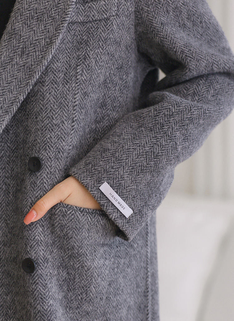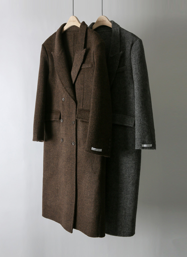 울이 블렌딩된 톡톡한 헤링본 소재로 겨울 시즌 따뜻하면서도