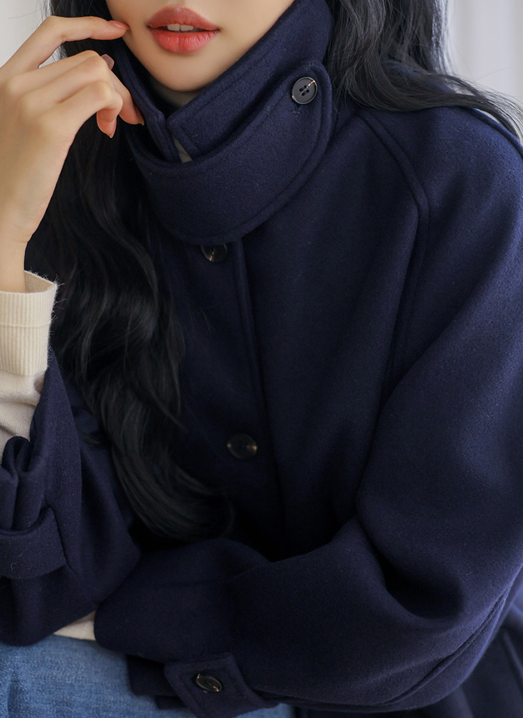 [The Onme] Modern Wool-Blend Half Coat