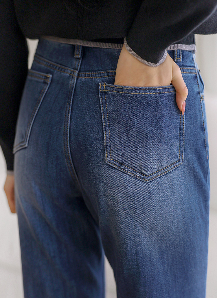 [Warm bootcut denim blended with chenille yarn and light brushed lining, offering a soft touch, refined stretch, and leg-lengthening silhouette for winter wear.]
