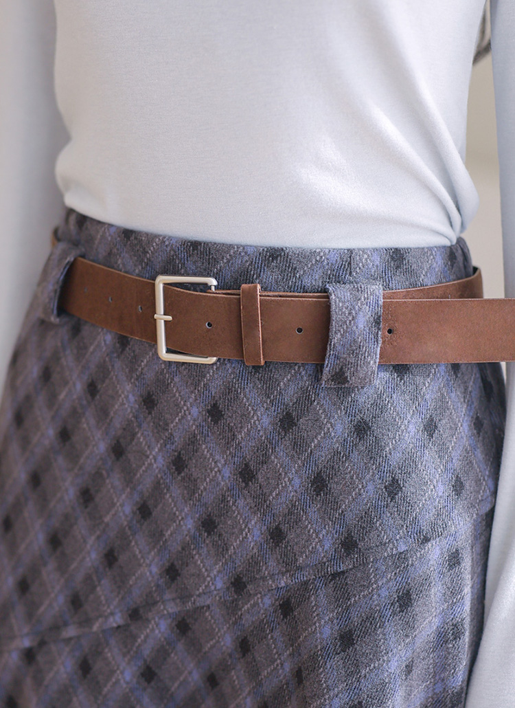 [The Onme] Refined Asym Belted Check Midi Skirt