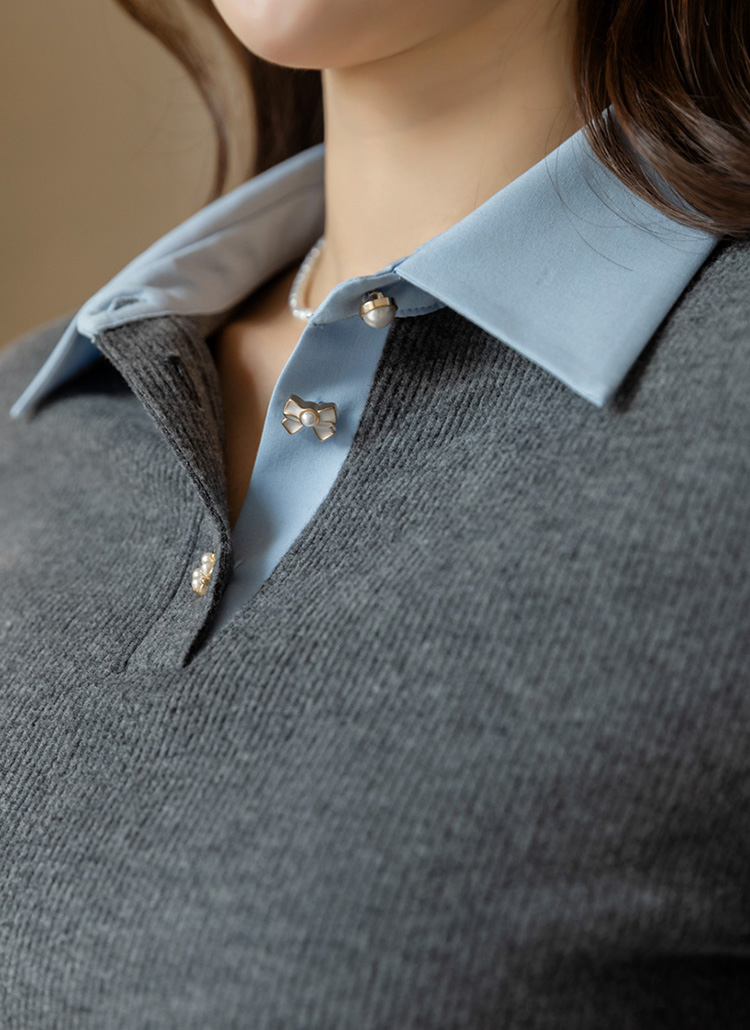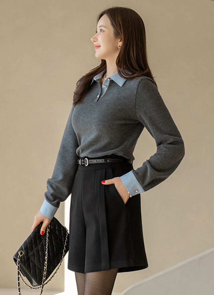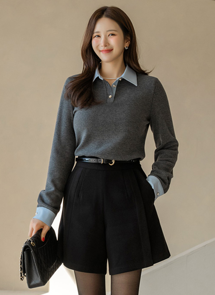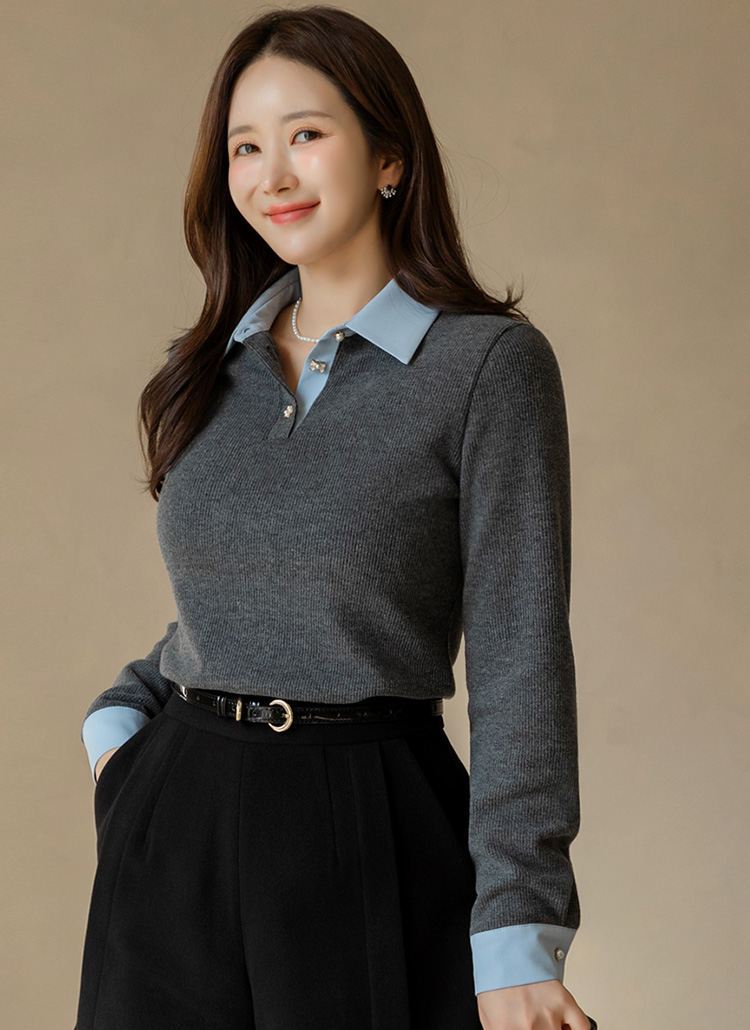 [LouisAngel] Classic Contrast Collar Rib Blouse