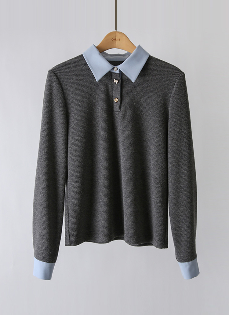 [LouisAngel] Classic Contrast Collar Rib Blouse