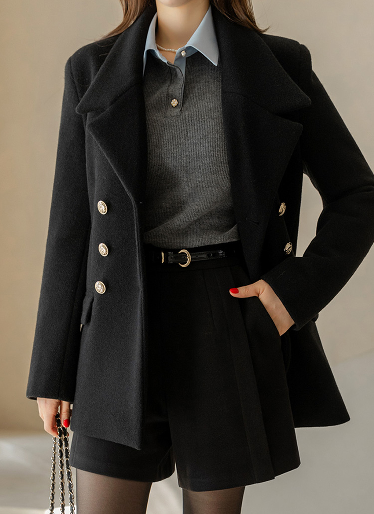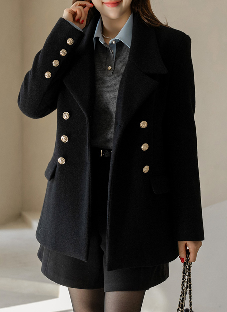 Classic Gold Button Double Half Coat
