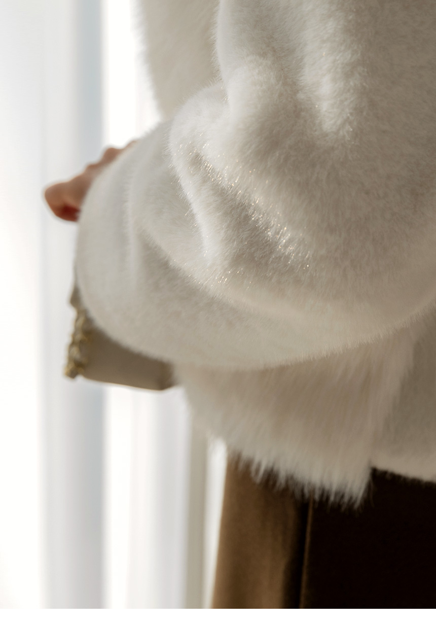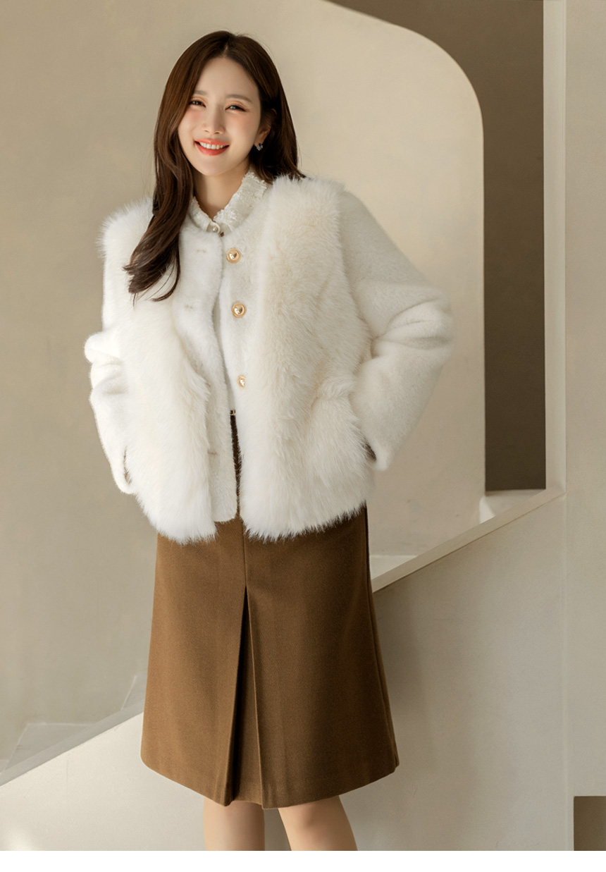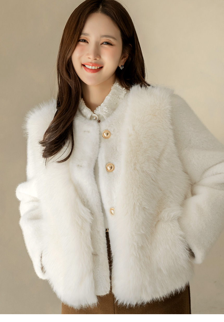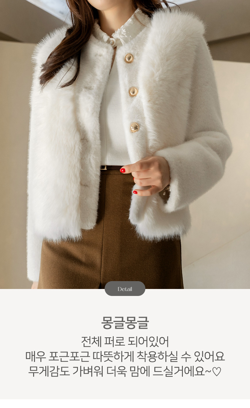 촘촘하게 들어간 풍성한 퍼 자켓으로