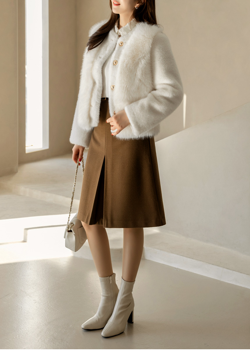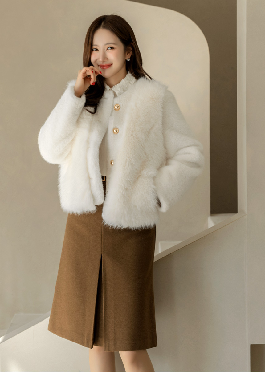 미니벨 베스트 라인 트리밍 보송보송 페이크 퍼 자켓