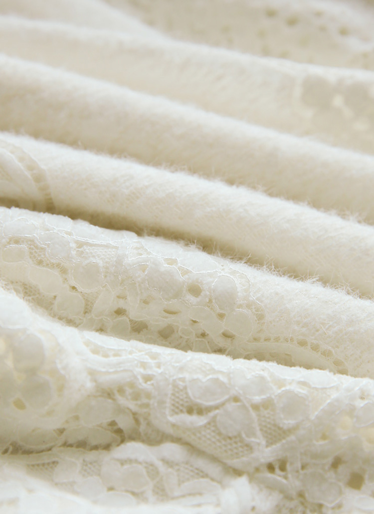 눈꽃처럼 섬세한 패턴의 날개사 레이스로 제작되어