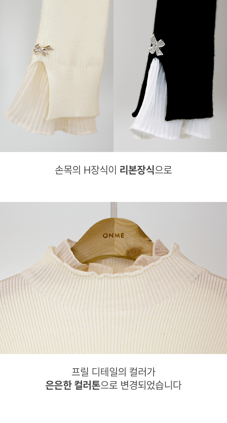 프릴 디테일이 은은하게 어우러지는 컬러톤으로 변경되었습니다.