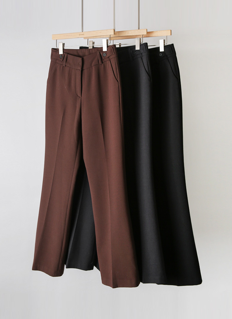 실루엣을 한층 더 정제된 클래식 무드로 완성해주는 부츠컷 슬랙스에요