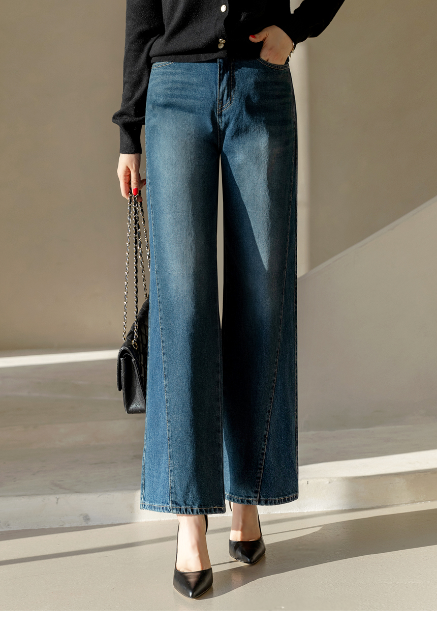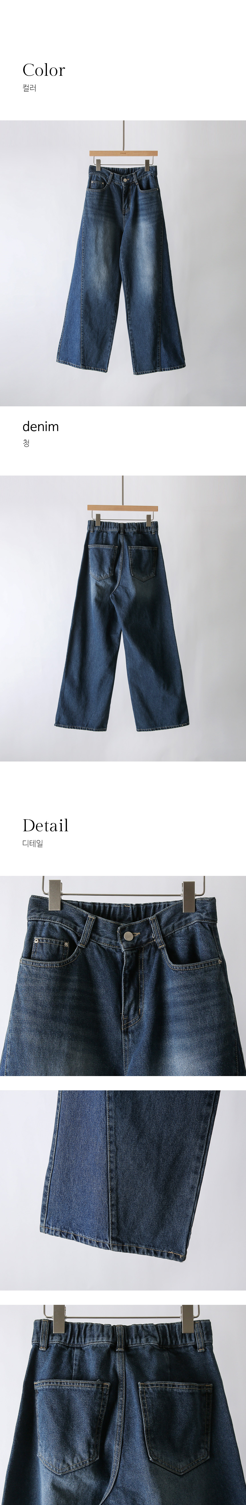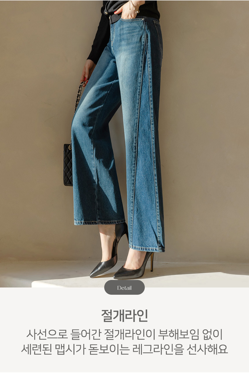 빌리드 사선 절개 라인 일자 세미 와이드 데님 팬츠
