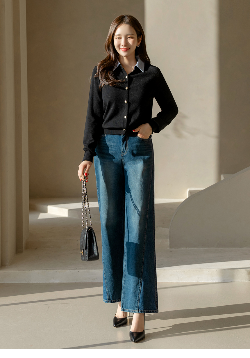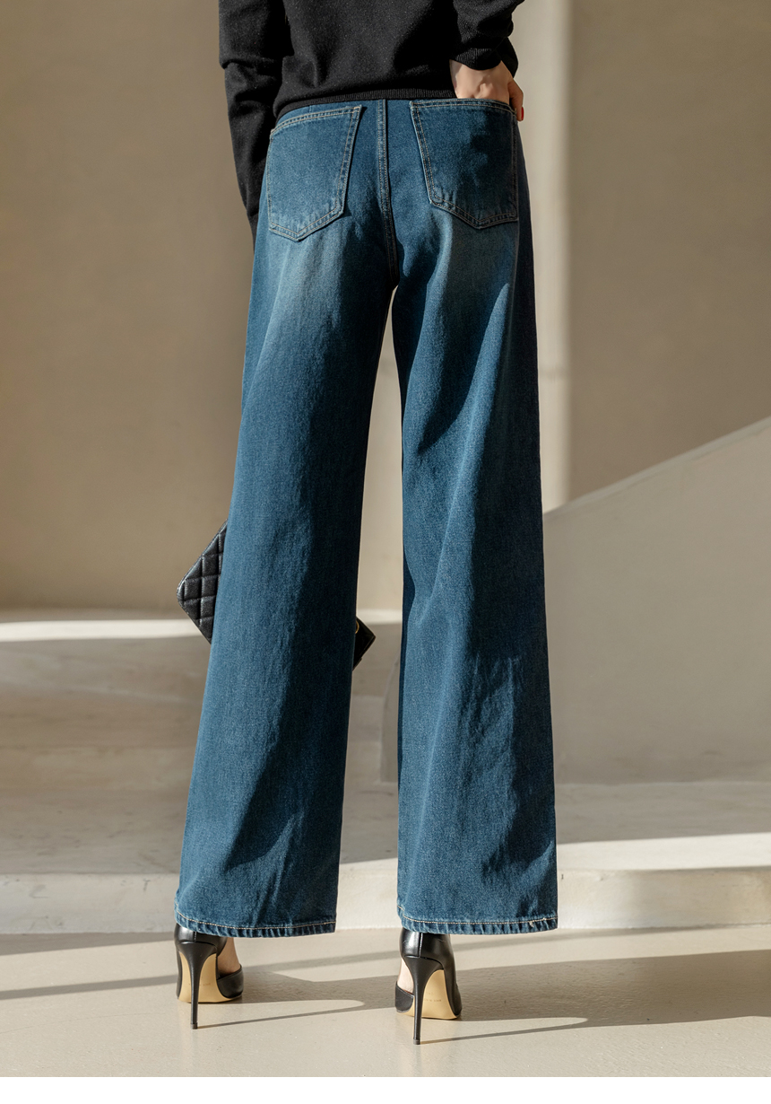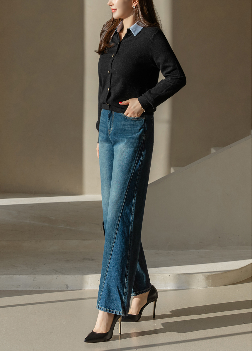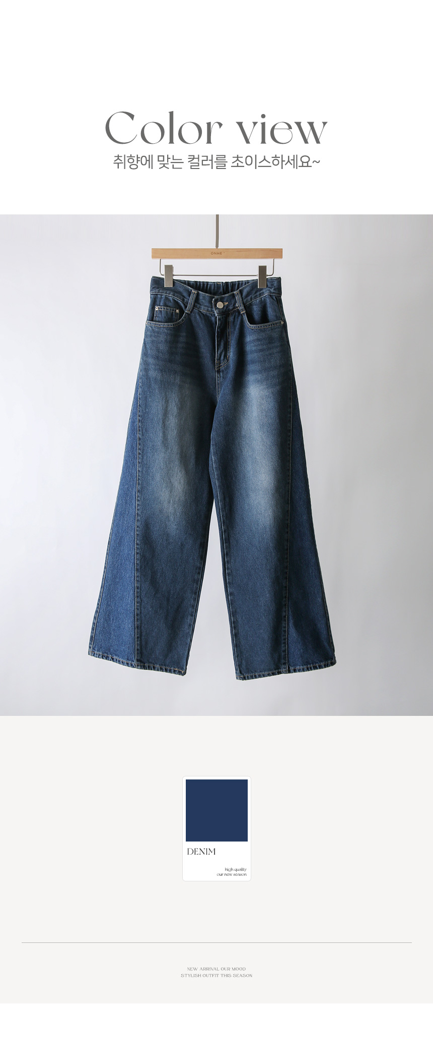 한층 더 세련된 인상을 완성해주는 세미 와이드 데님 팬츠에요