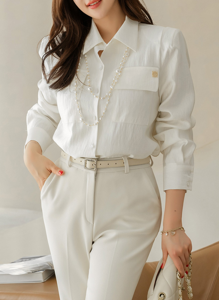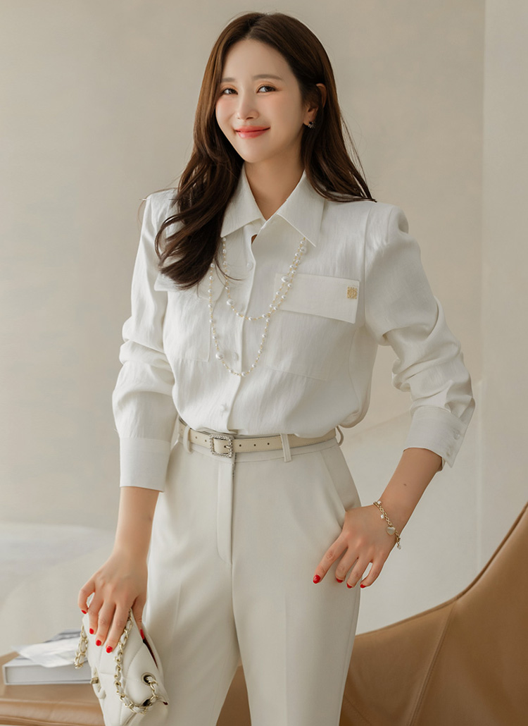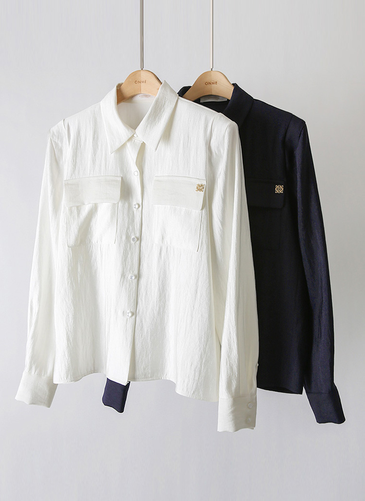 Modern Crest Pocket Collar Blouse