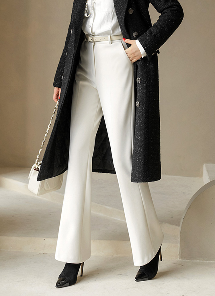 [Clean-lined slim bootcut slacks with soft brushed lining and stretch fabric, offering warmth, comfort, and a leg-lengthening fit ideal for office and formal wear.]