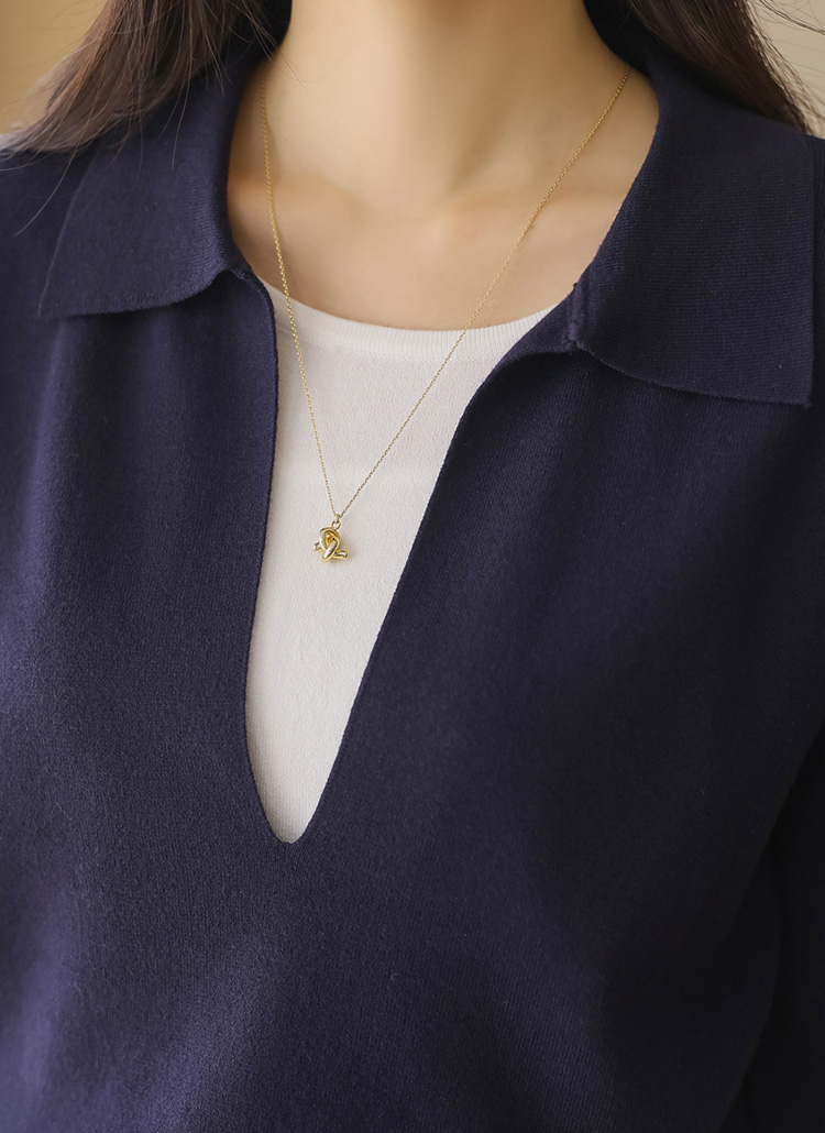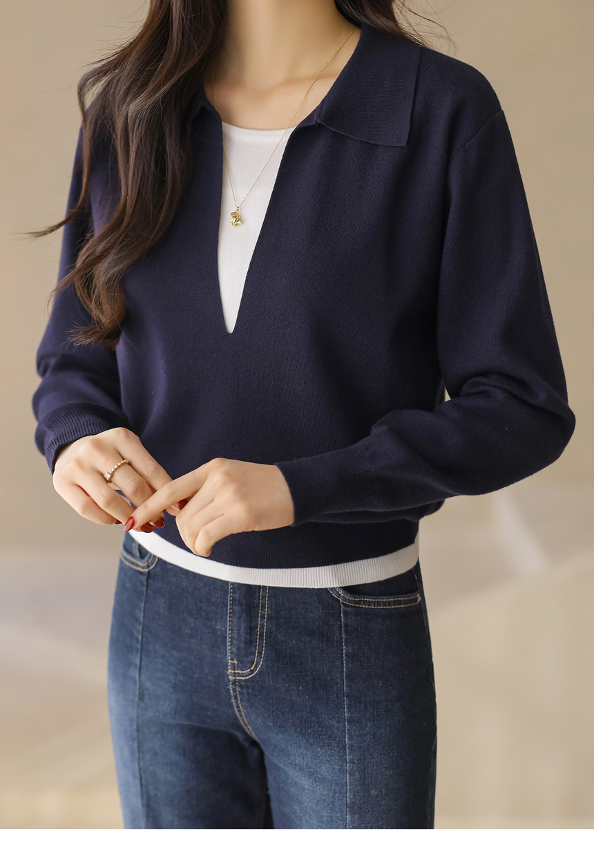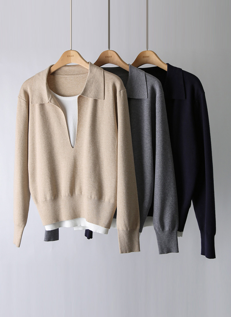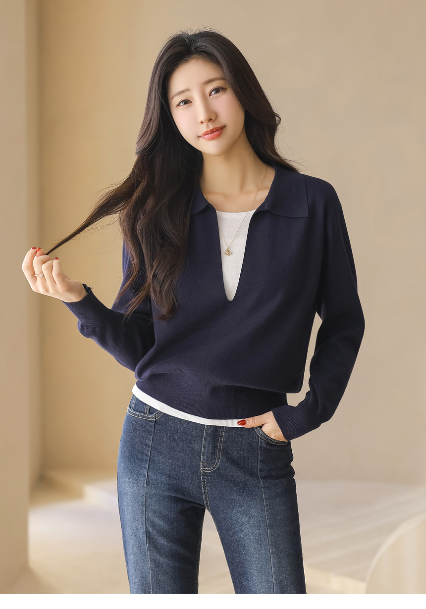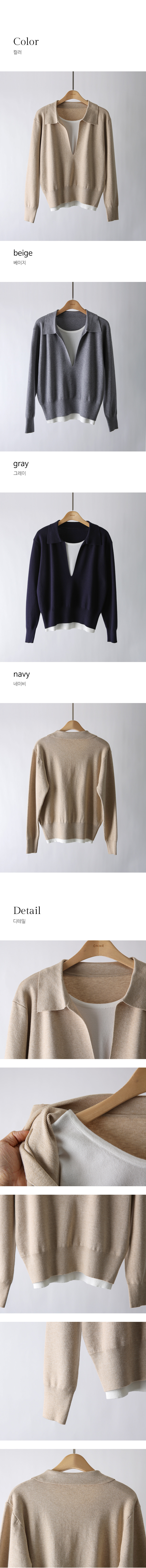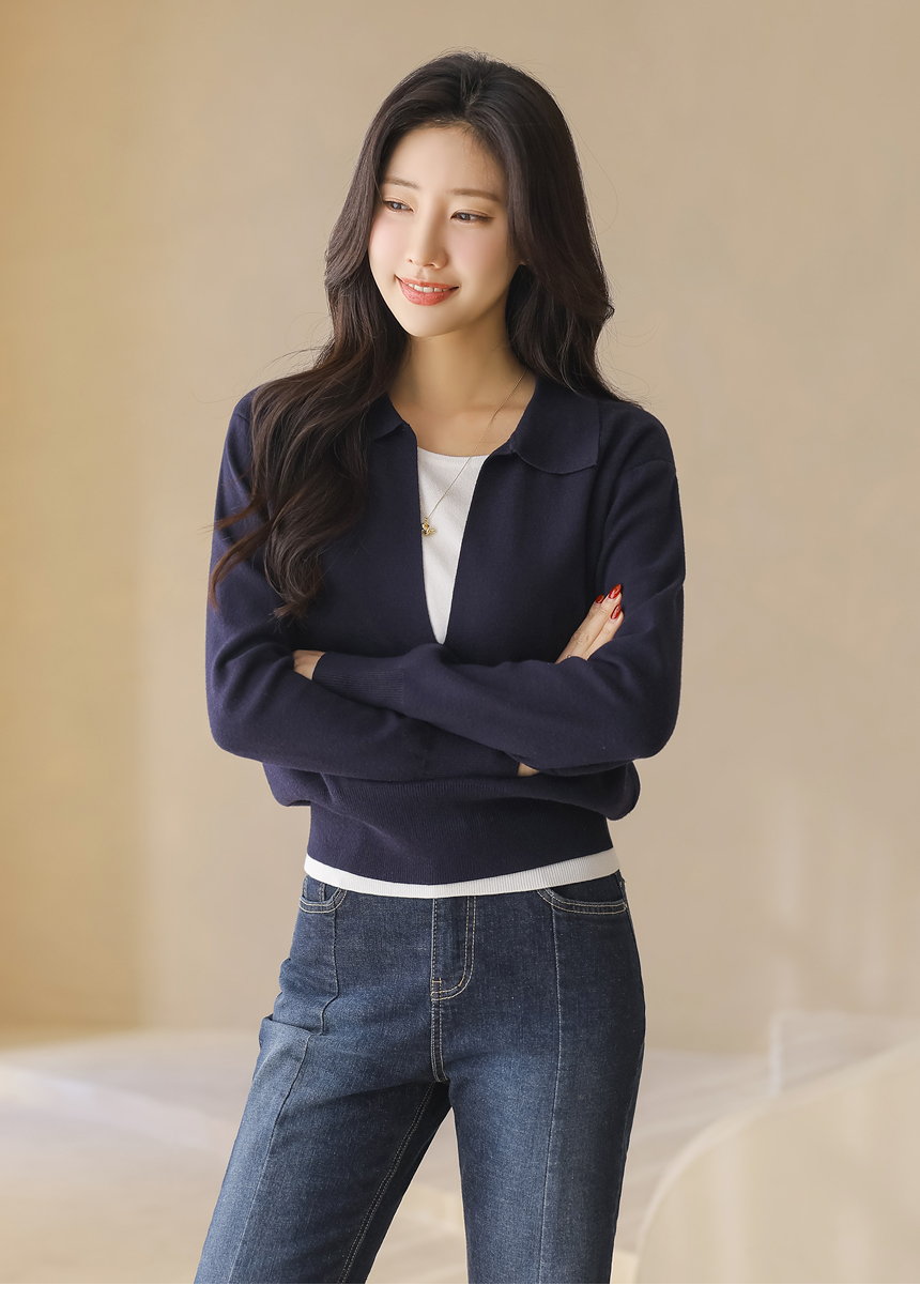 넥라인과 밑단에 더해진 배색 레이어드 디테일이