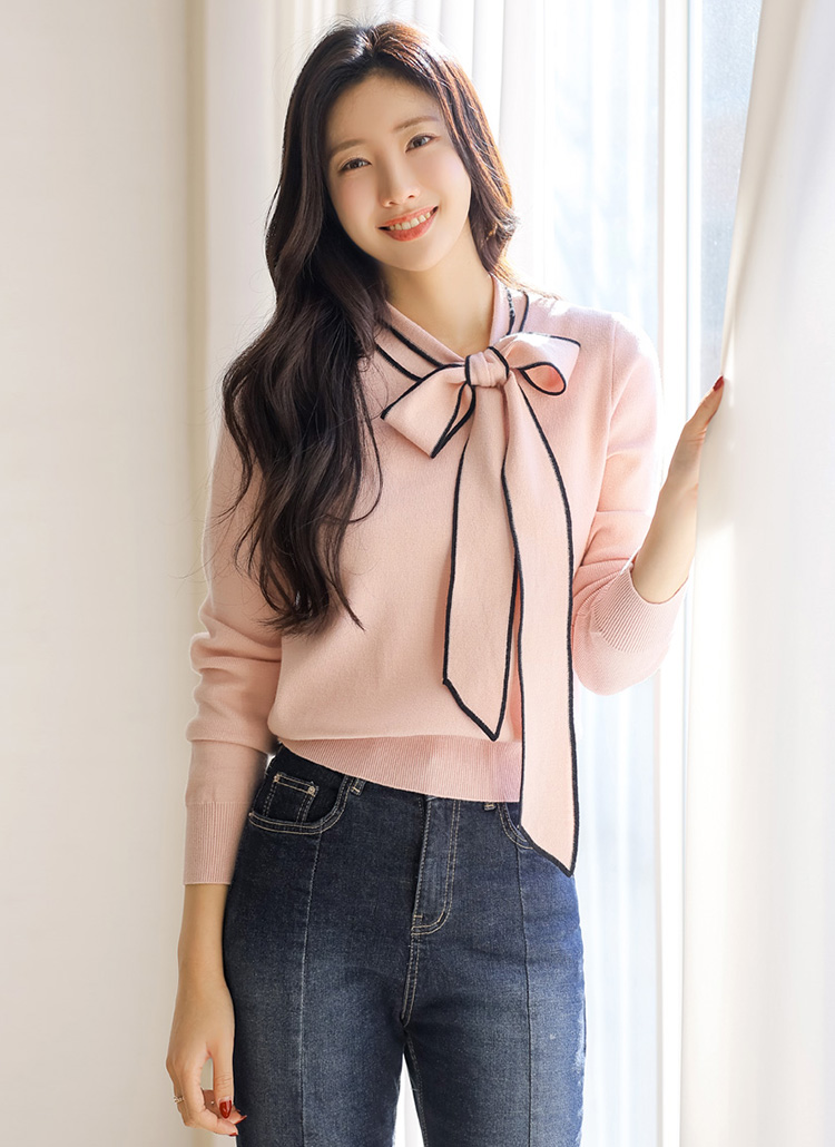배색 리본 타이로 러블리한 니트예요 :)