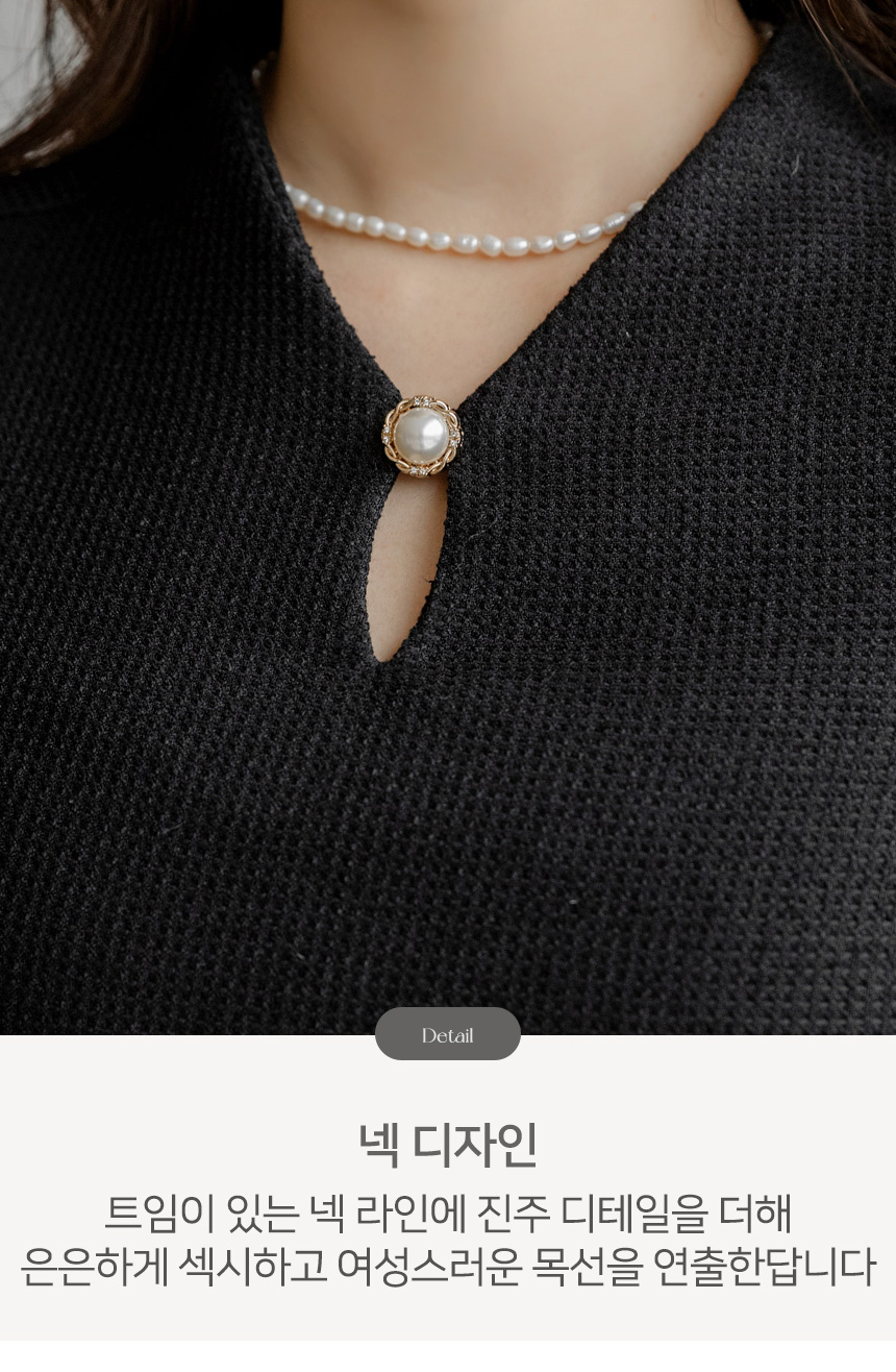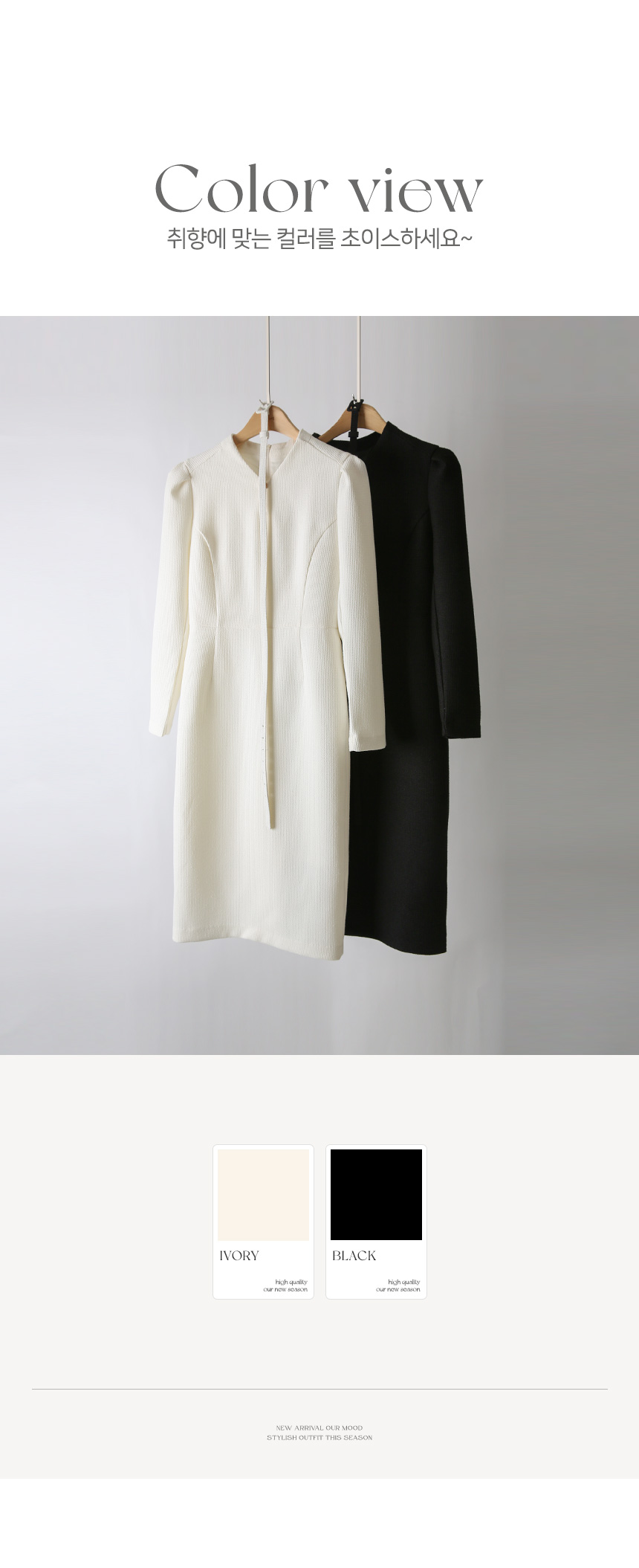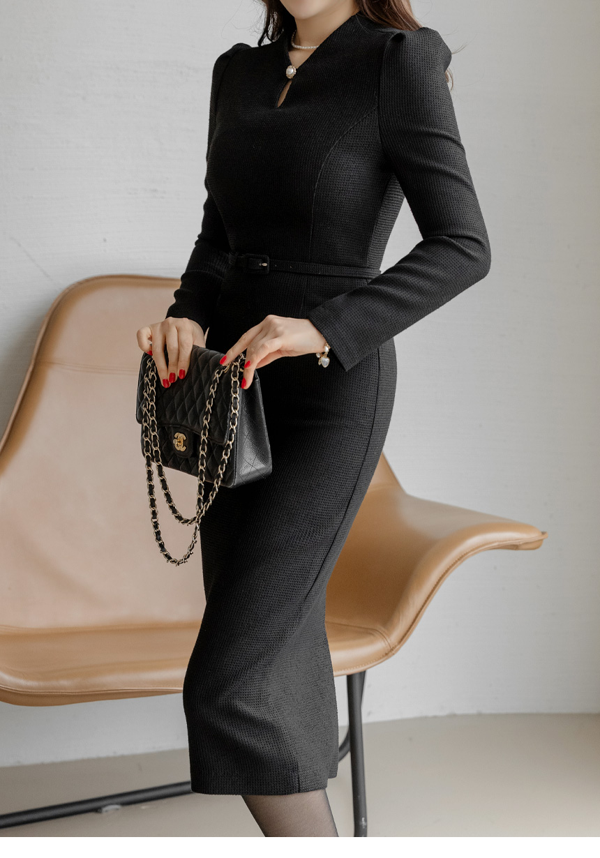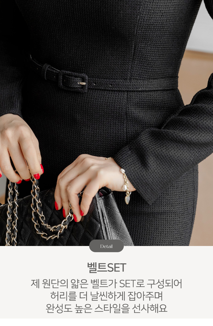 앤더슨 진주 포인트 트임 넥 벨트SET 완벽 슬림 라인 클래식 원피스