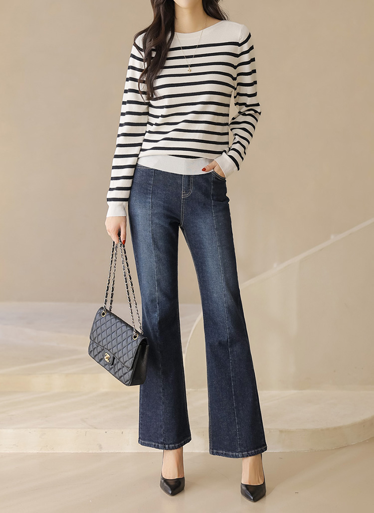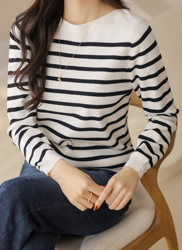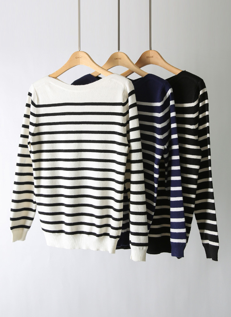데일리로 즐기기 좋은 스트라이프 보트넥 니트예요 :)