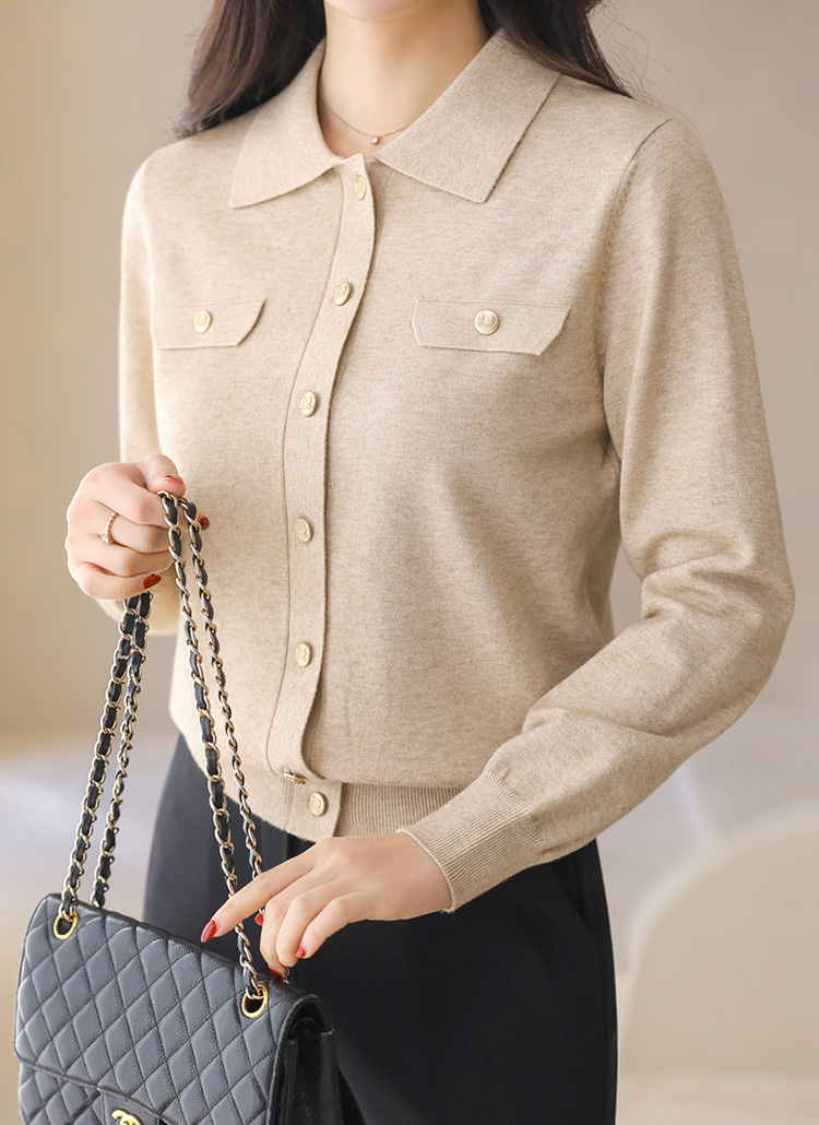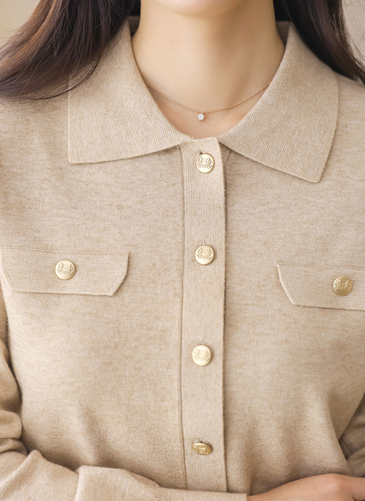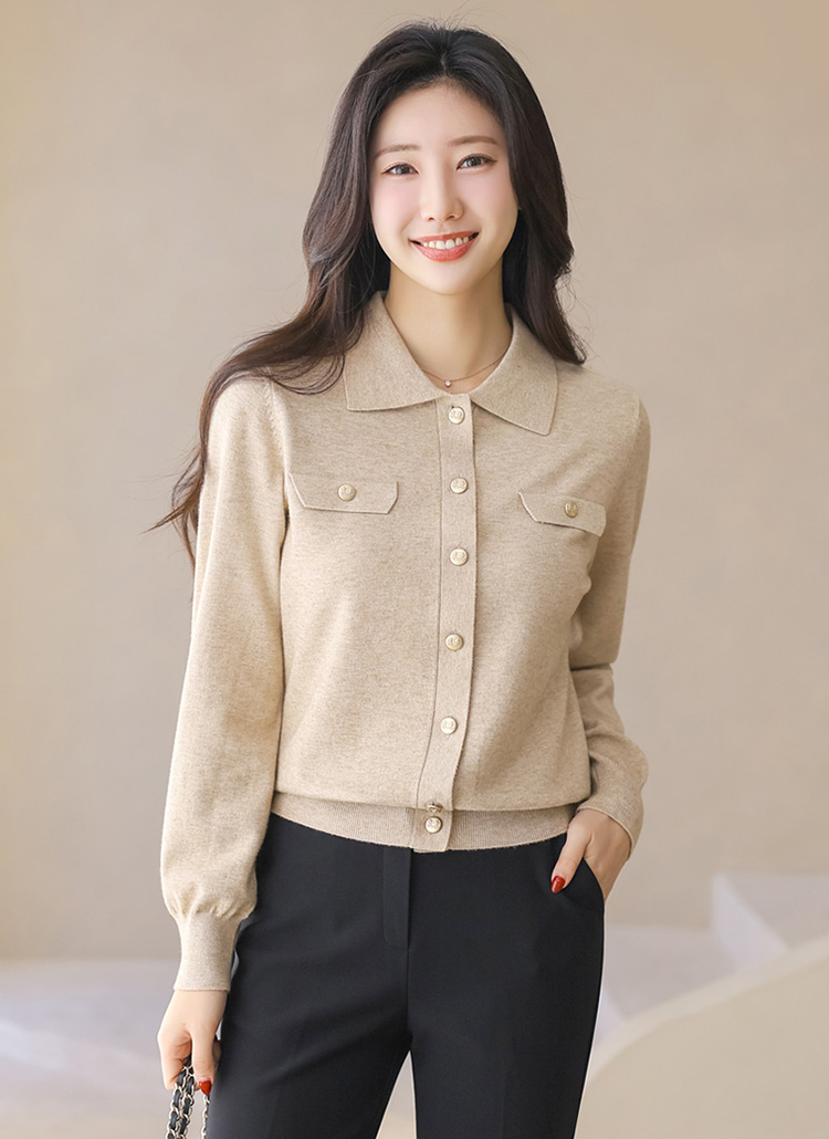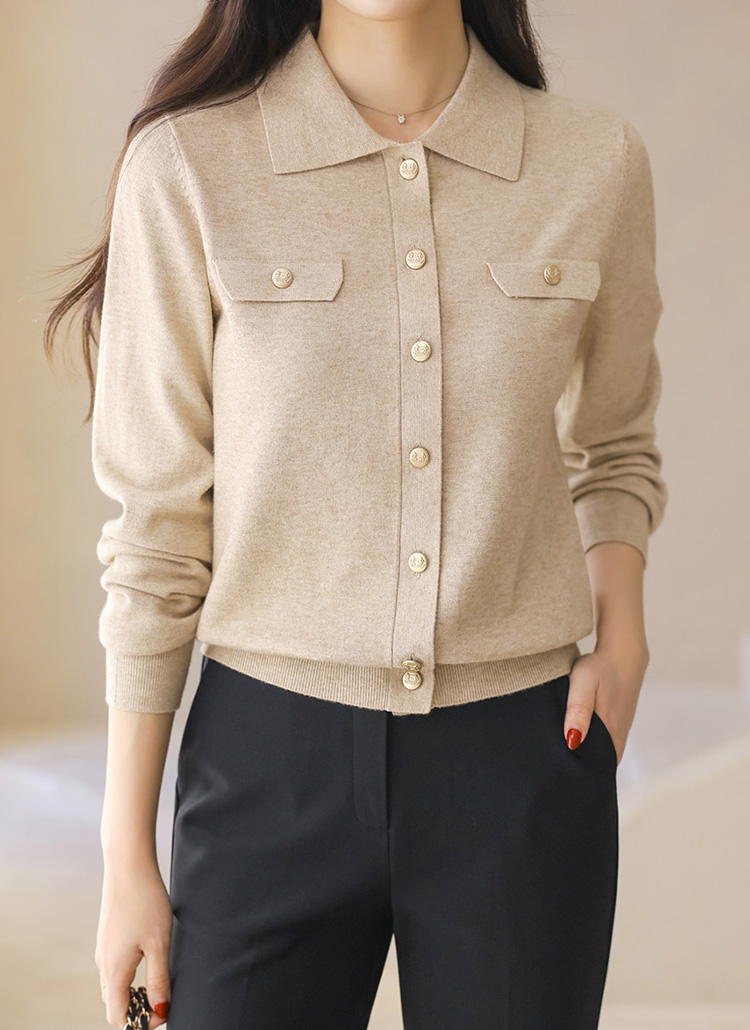 Refined Gold-Button Collar Knit Cardigan