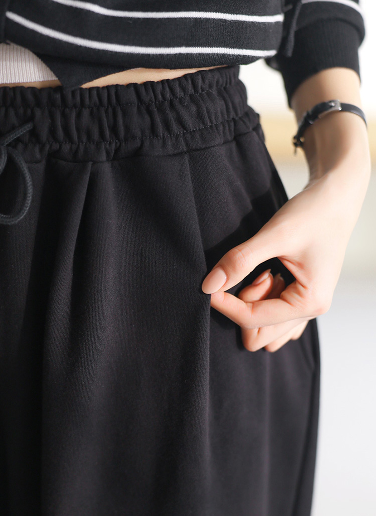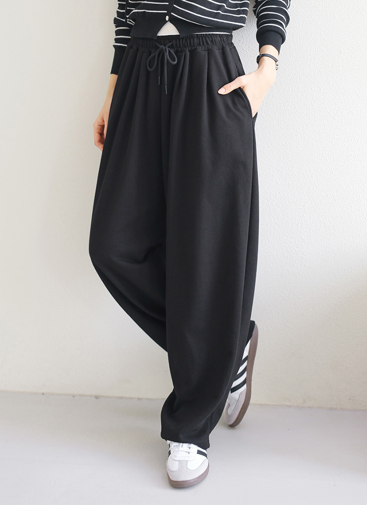 여유 있게 떨어지는 와이드핏으로 하체 군살을 자연스럽게 커버해주며
