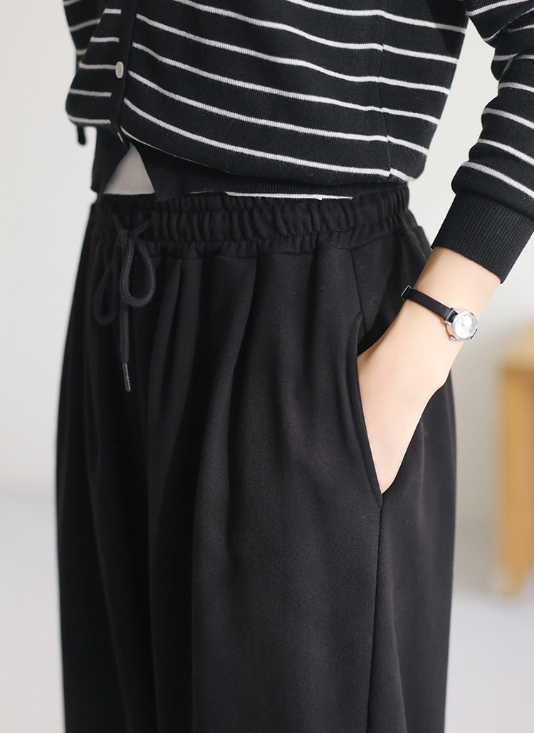 [Loose wide-leg pants with full elastic waistband and pintuck detail, designed to flatter the legs while delivering breathable cotton comfort for everyday casual and travel styling.]