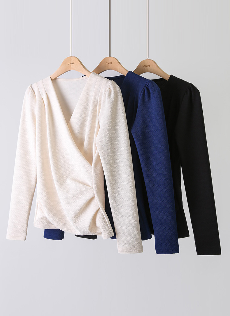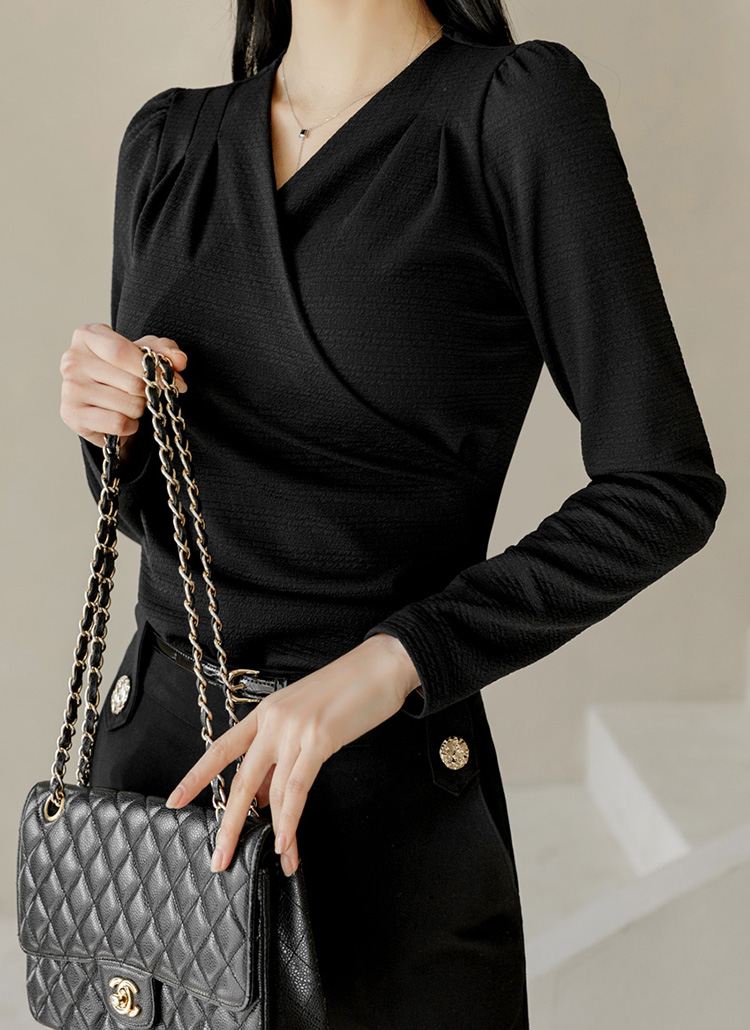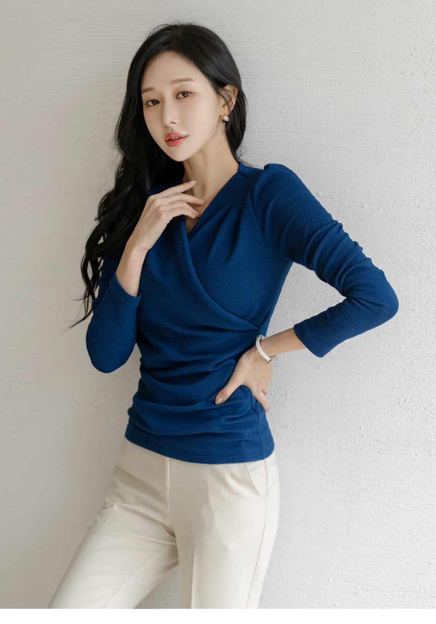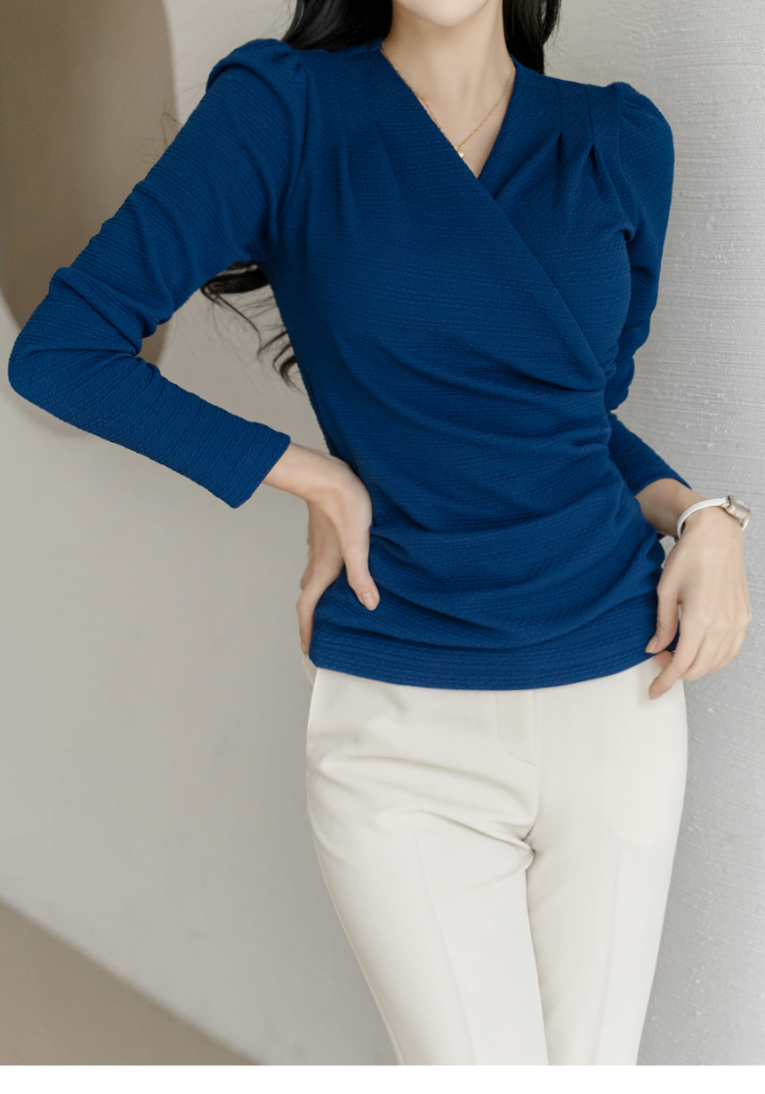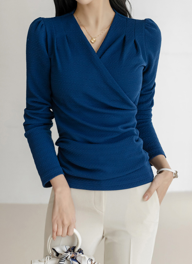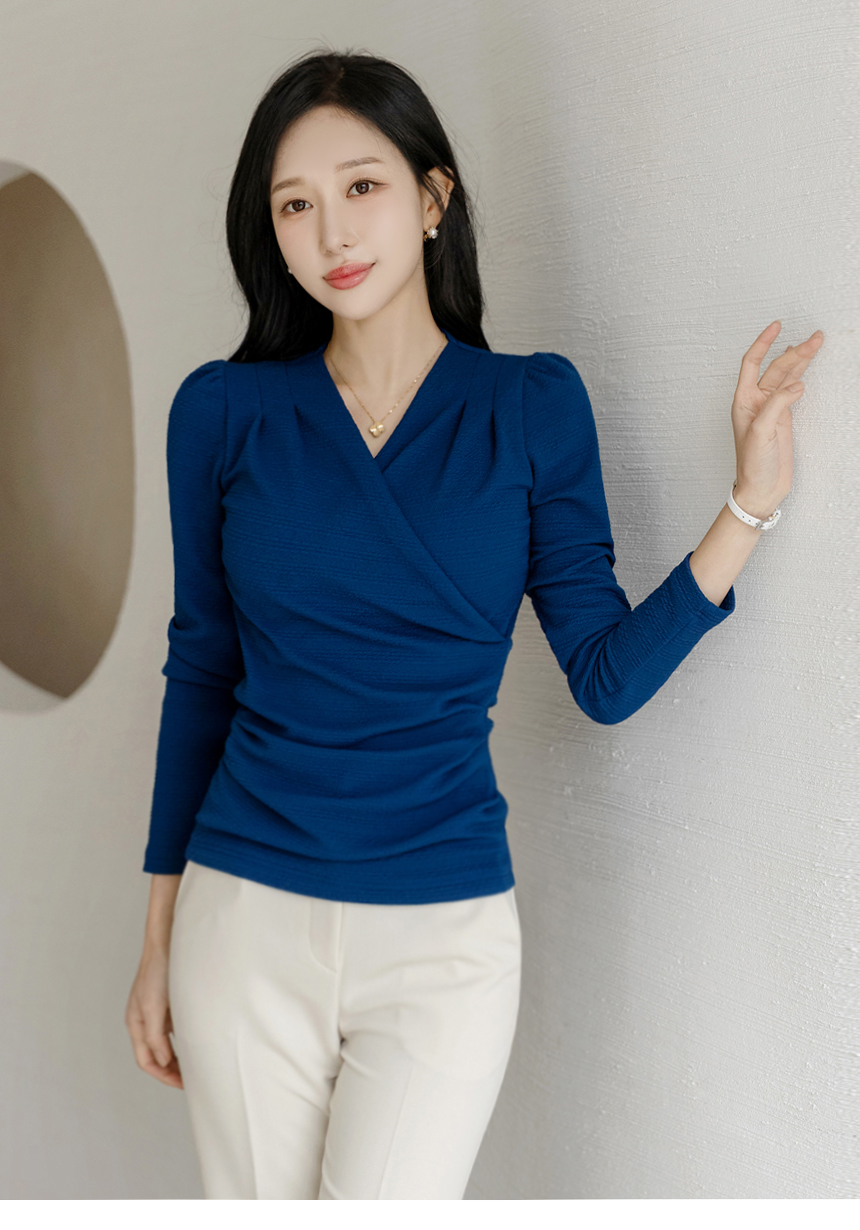 [LouisAngel] Grace Form Wrap Shirred Blouse Tee