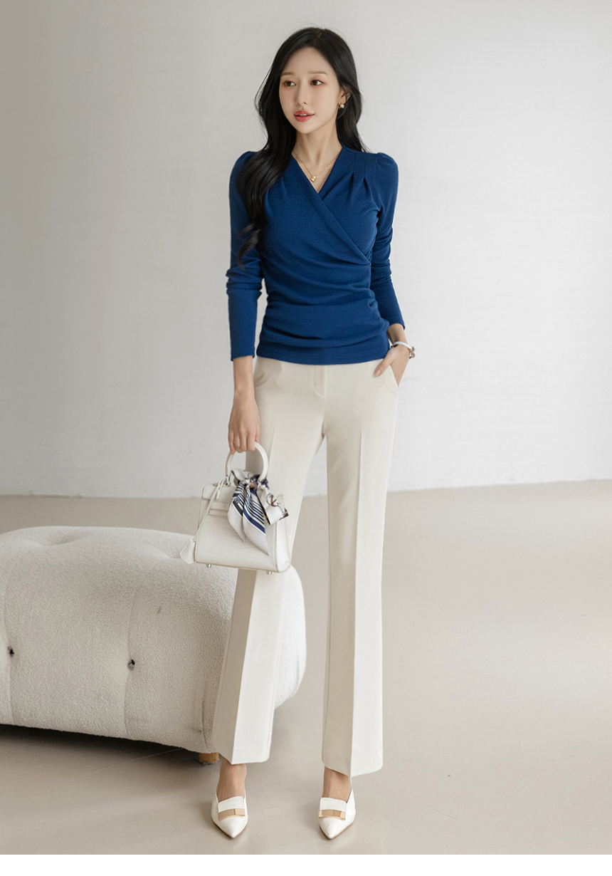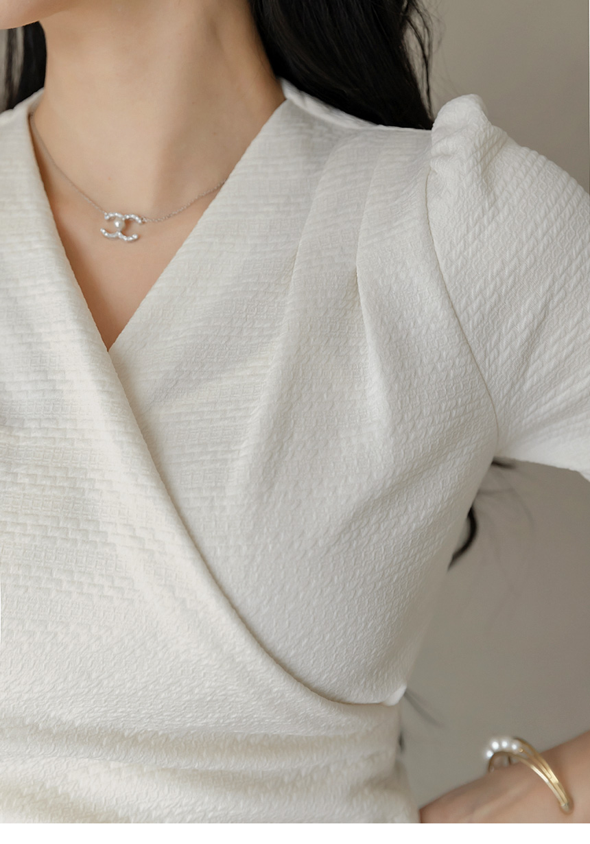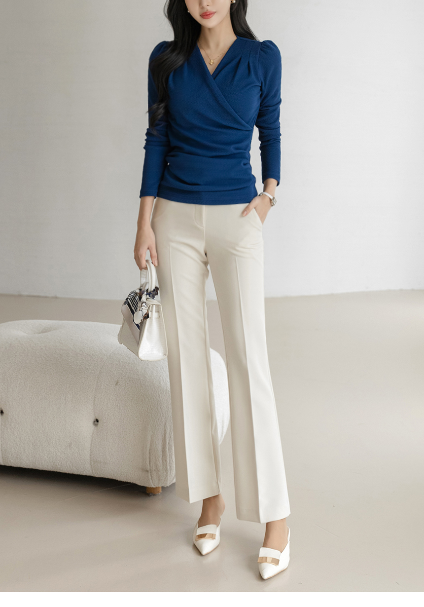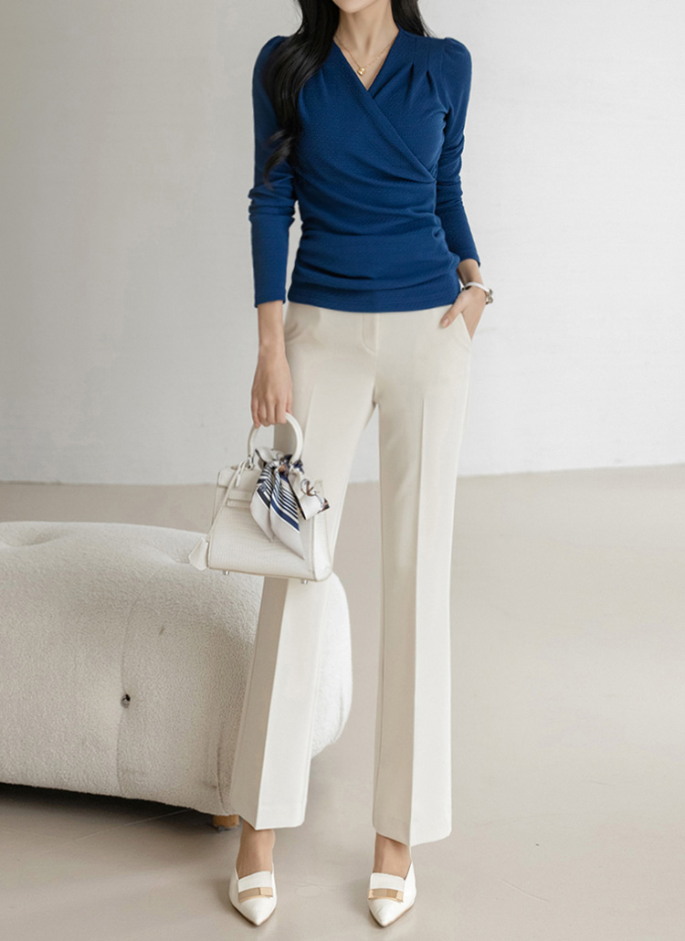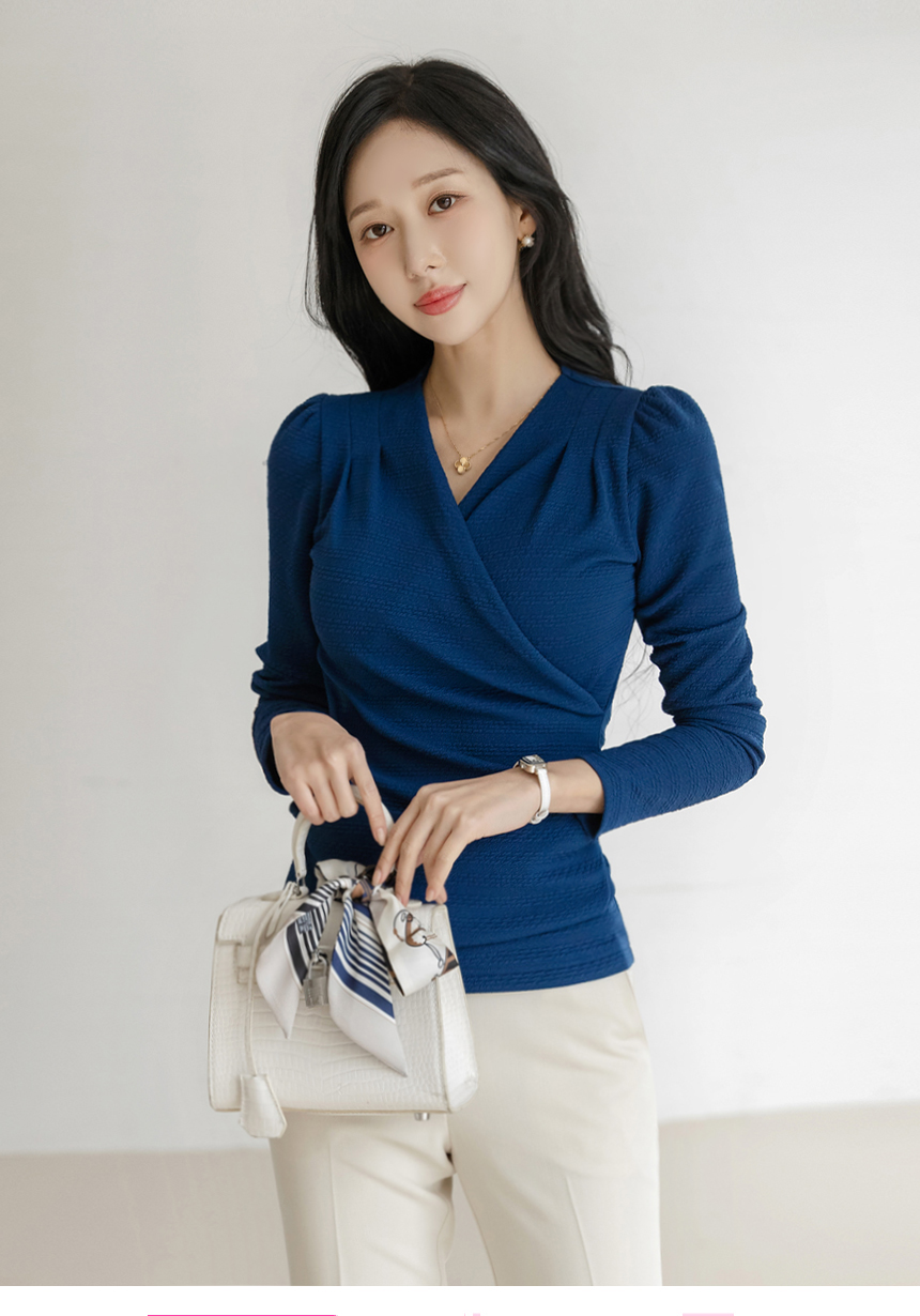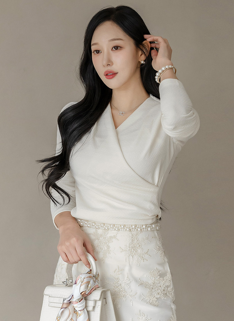 [LouisAngel] Grace Form Wrap Shirred Blouse Tee