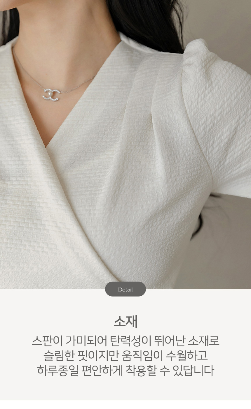 어깨와 허리 라인에 핀턱으로 섬세하게 잡아준 셔링 디테일이