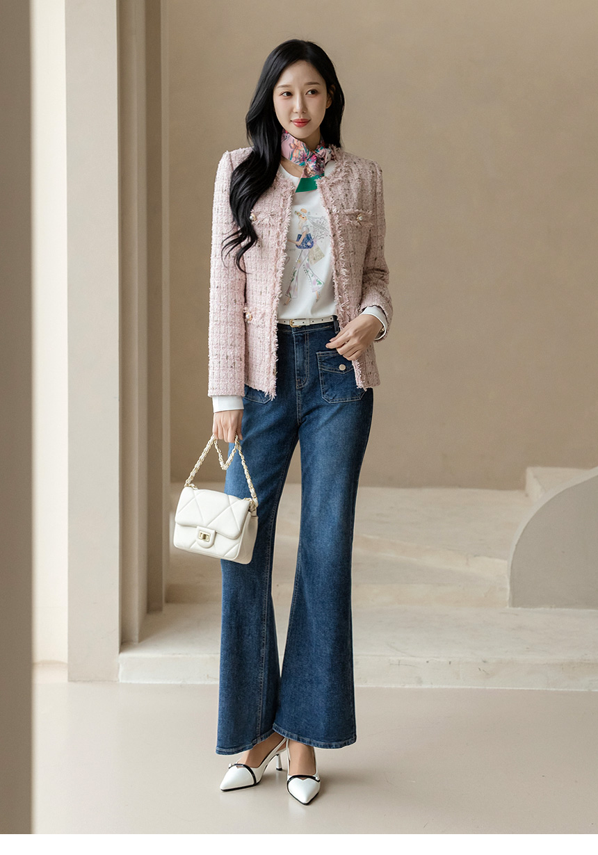 • [LouisAngel] Rosé Pearl Fringe Tweed Jacket