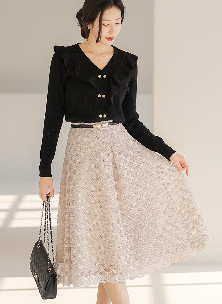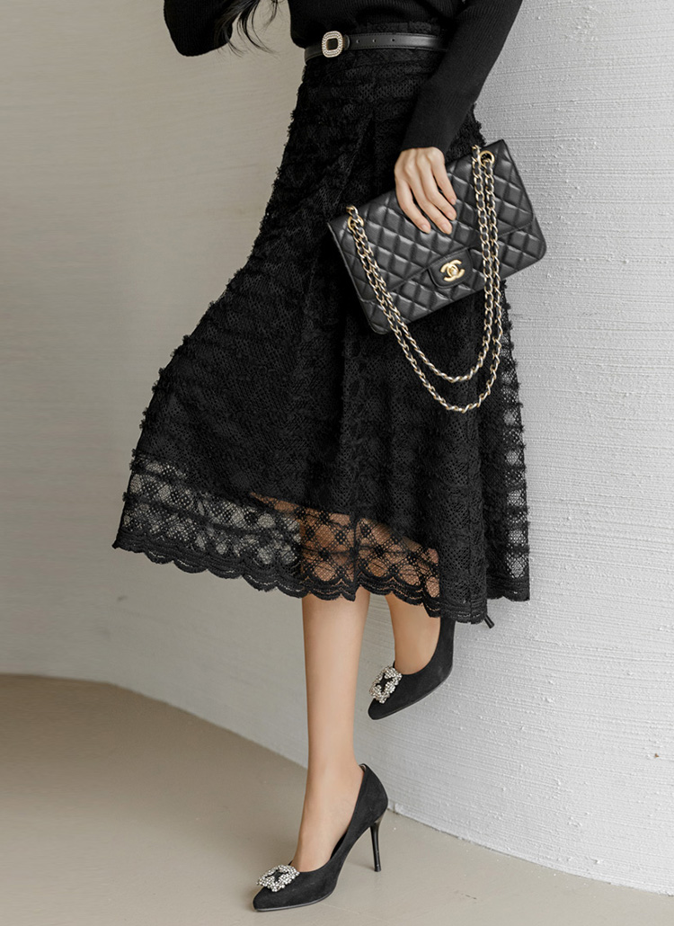 [LouisAngel] Luxe Textured Lace Midi Skirt