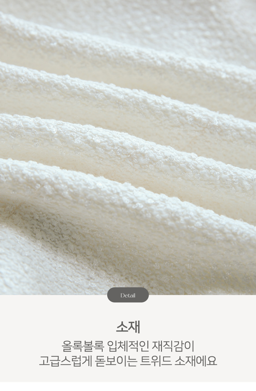 입체적인 텍스쳐가 돋보이는 트위드 소재로 완성되어