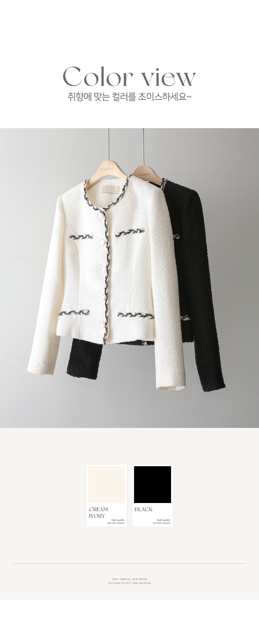 우아한 존재감을 은은하게 드러내는 매력만점 트위드 자켓이에요