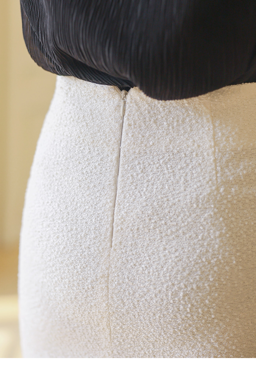 우아하고 세련된 분위기를 자연스럽게 연출하는 H라인 트위드 미디 스커트에요