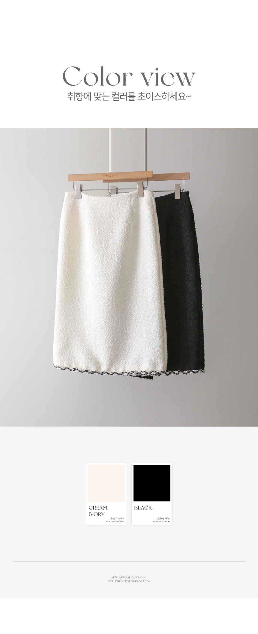 무릎쯤 오는 단정한 미디 기장으로 부담없이 우아한 무드를 즐기시기 좋고