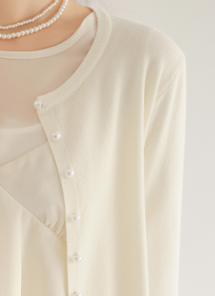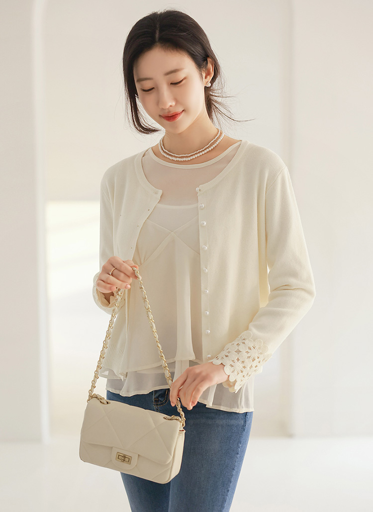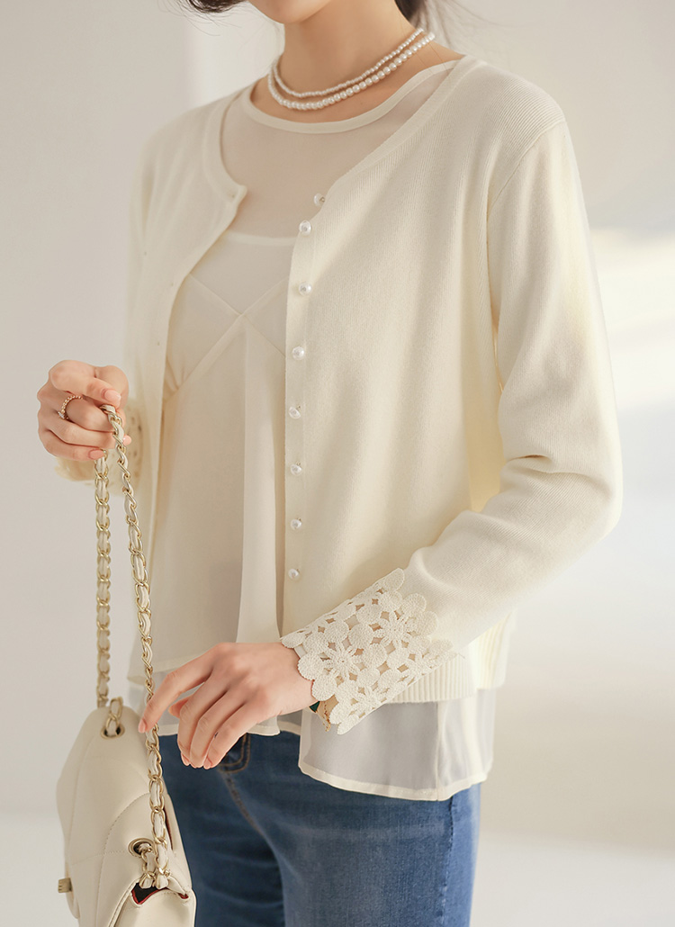 Flora Lace Cuff Pearl Knit Cardigan